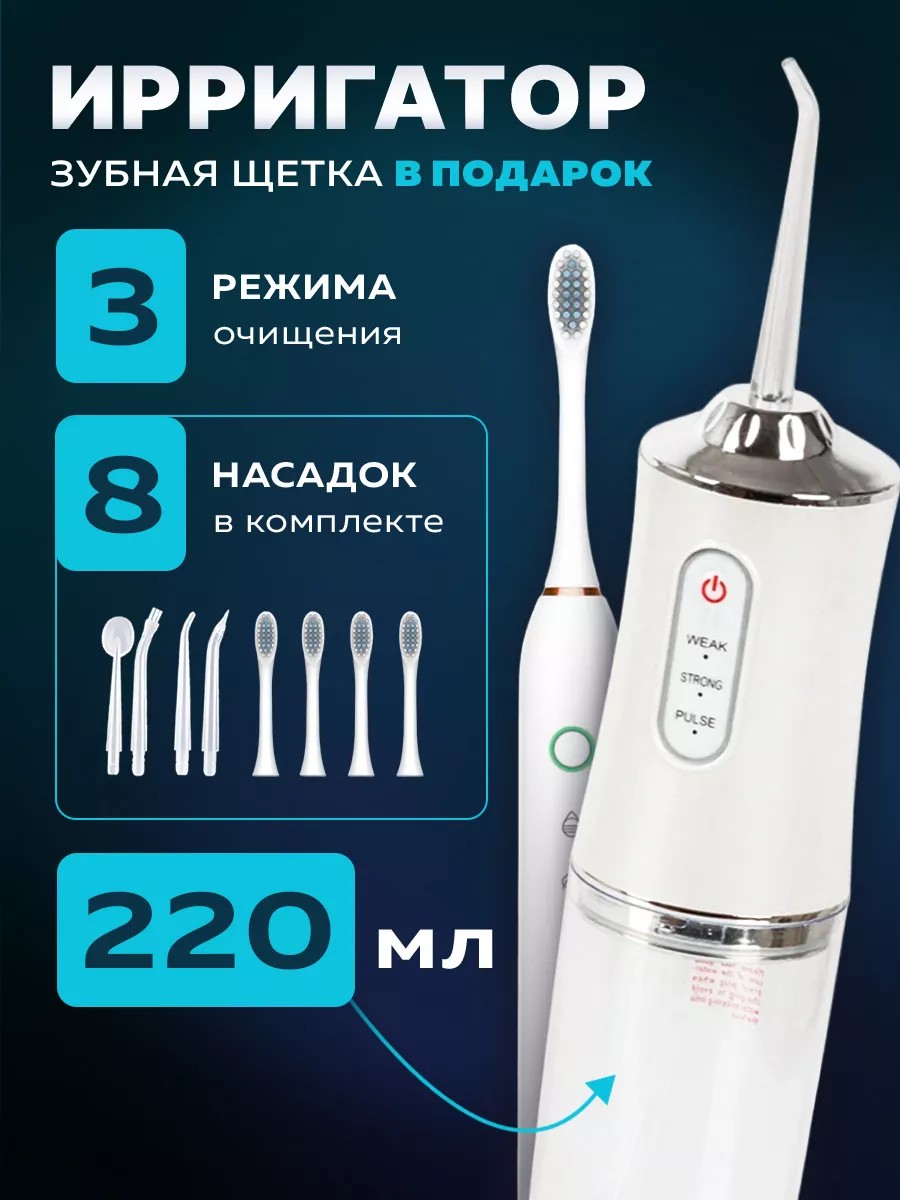 | Доп. опции ирригатора | индикатор зарядки; ирригатор портативный; зубная щетка |