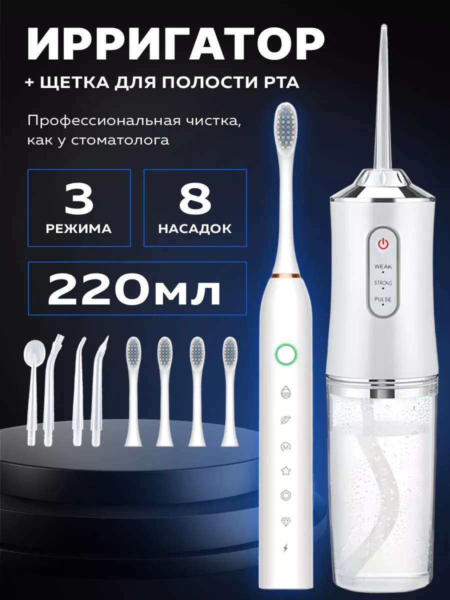 | Доп. опции ирригатора | УФ-дезинфектор; зубная щетка детская; зубные щетки |