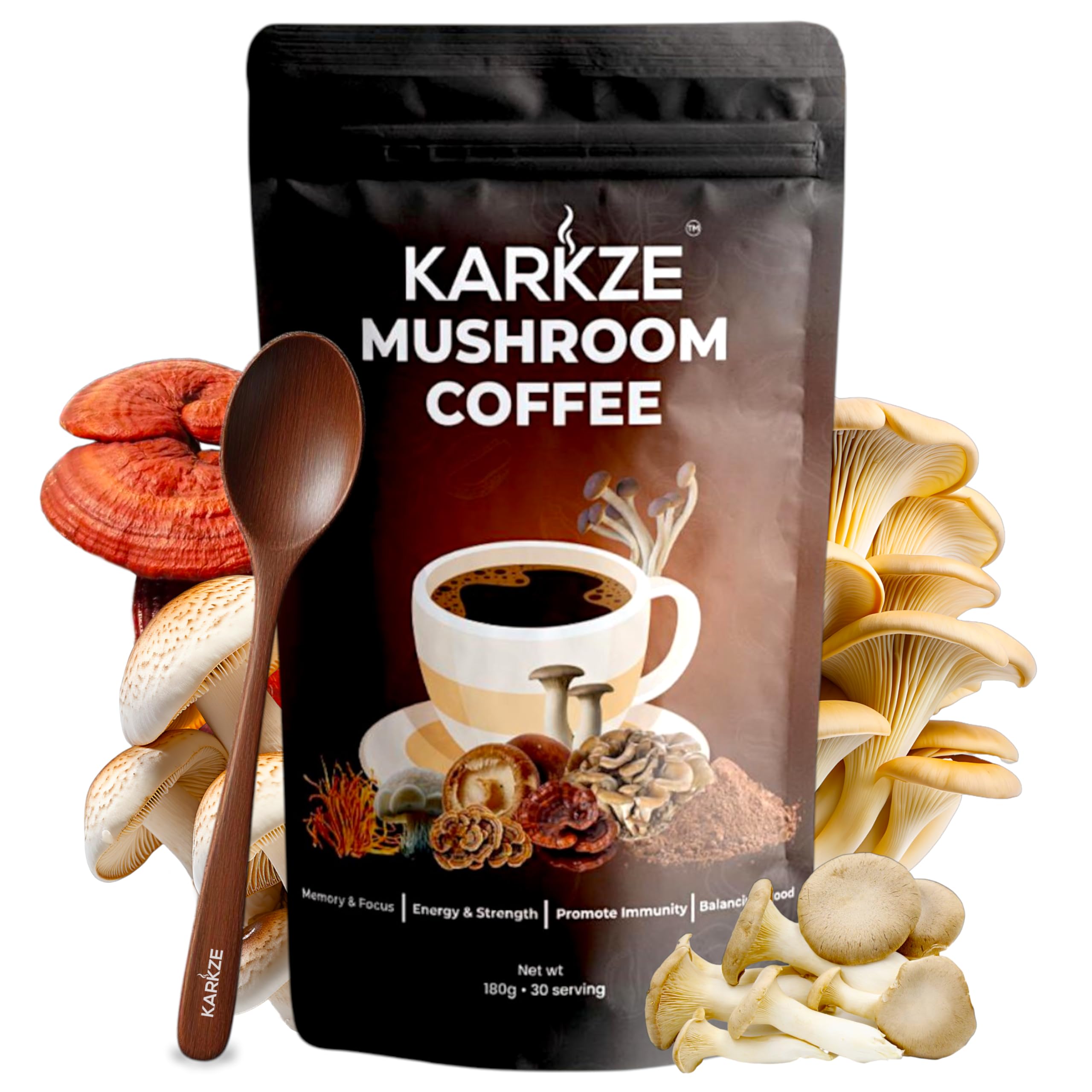 Easy to Use – At Home or On the Go: Each 180g pouch gives you 30 servings of mushroom instant coffee—just add hot water, stir, and enjoy. No brewing tools, no fuss. Whether you're at home, at work, or traveling, it's a simple way to stay nourished and focused wherever your day takes you. Smooth, Rich Flavor – Enjoy Hot or Cold: This coffee has a naturally earthy, smooth taste that pairs well with your favorite milk or sweetener. mushroom coffee mixes it hot in the morning or pour it over ice in the afternoon. It dissolves easily and tastes great either way—perfect for cutting back on traditional coffee while keeping your daily ritual. Supports Focus, Immunity Gut Health: This isn't just a cup of coffee mushroom—it's a daily wellness boost. Whether you're looking to stay sharp at work, support your immune system, or care for your gut health, this blend delivers. Each ingredient was chosen for its natural ability to help you feel your best, from mental clarity to metabolic balance. Natural Energy Boost with No Jitters or Crash: If regular coffee leaves you feeling jittery or drained, our mushroom coffee is a great alternative. Cordyceps supports natural energy, while L-Theanine helps you stay calm and focused. Combined with smooth Arabica, this mushroom coffee blend gives you a steady lift—without the crash. 7 Functional Mushrooms L-Theanine for Everyday Wellness: Our blend combines Seven functional Mushroom coffee instant with L-Theanine to support both body and mind. It includes Lion's Mane for focus, Reishi for relaxation, Cordyceps for energy, and others like Shiitake, Maitake, Turkey Tail, and King Trumpet for immune, gut, and heart health. L-Theanine adds a calm, focused feel—making it a simple way to support your wellness daily.