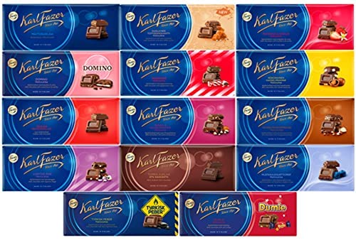 Karl Fazer Variety Pack - 180g to 200g Bars. Choose 10 bars from 14 exquisite flavors. Indulge in the luxurious world of Karl Fazer chocolates with our specially selected variety pack. Choose 10 bars from our collection of 14 delicious flavors, each offering a unique taste experience that fulfills every chocolate lover's dreams. Whether you prefer the classic sweetness of milk chocolate, the rich intensity of dark chocolate, or innovative combinations of fruit, nuts, and spices, this assortment has something for everyone. Flavors included: Original Milk Chocolate (200g): A timeless classic offering the perfect balance between a creamy texture and a rich flavor. Salted Caramel Crunch (200g): Delicious pieces of caramel with a pinch of salt, coated in smooth milk chocolate. Domino Milk Chocolate (195g): A unique blend of beloved Domino biscuit pieces coated in creamy milk chocolate. Strawberry Vanilla (190g): A harmonious blend of sweet strawberries and creamy vanilla in flavorful milk chocolate. Whole Hazelnuts (200g): Crunchy whole hazelnuts coated in milk chocolate for a satisfying texture. Creamy Milk Chocolate (200g): An even creamier version of our classic milk chocolate for those seeking ultimate indulgence. Raisins and Hazelnuts (200g): A delicious mix of juicy raisins and chopped hazelnuts in our signature milk chocolate. Chopped Hazelnuts (200g): Finely chopped hazelnuts incorporated into milk chocolate for a crunchy and indulgent experience. Licorice Dragees (200g): Bold pieces of licorice coated in smooth chocolate, offering a unique and intriguing flavor. 47 Dark Chocolate (200g): For connoisseurs, a 47 cocoa dark chocolate that balances bitterness with a subtle sweetness. Blueberry Yogurt Crisps (190g): Tangy blueberry yogurt pieces incorporated into creamy chocolate for a fruity touch. With (200g): Karl Fazer With combines classic mint lentils with premium milk chocolate made from fresh ingredients. Fazer Dumle (200g): Soft Dumle caramel pieces at the heart of milk chocolate for a tender and smooth contrast. Features: Choose your favorites: Customize your pack by selecting 10 bars from 14 available flavors. Premium quality: Made in Finland with the finest ingredients, each bar meets Karl Fazer's high standards. Perfect for sharing or gifting: With its varied selection, this pack is ideal for sharing with loved ones or as a thoughtful gift for any occasion. Versatile Flavors: From comforting classics to bold combinations, there's a flavor to satisfy every craving and mood. Discover the rich heritage and innovative flavors of Karl Fazer chocolate. Select your favorite assortment today and embark on a gourmet journey through taste and tradition.These chocolates are renowned for their unique taste and high quality. Each bar is carefully crafted with the finest ingredients. This assortment, with its wide variety of flavors, is an ideal choice for chocolate lovers. It also makes a perfect gift, to be enjoyed on special occasions and celebrations. Original Milk Chocolate 200g, Salted Caramel Crunch 200g, Milk Chocolate Domino 195g, Strawberry Vanilla 190g, Whole Hazelnuts 200g, Creamy Milk Chocolate 200g, Raisins Hazelnuts 200g, Chopped Hazelnuts 200g, Licorice Dragee 200g, 47 Dark Chocolate 200g, Blueberry Yogurt Crisps 190g, With 200g, Fazer Dumle 200g. Karl Fazer Chocolate 180 g – 200 g (Pack of 10) – Choose 10 tablets from 14 flavors.Lot varié de chocolats Karl Fazer - Tablettes de 180 g à 200 g Choisissez 10 tablettes parmi 14 saveurs exquises Laissez-vous tenter par l'univers luxueux des chocolats Karl Fazer avec notre lot varié spécialement sélectionné. Choisissez 10 tablettes dans notre collection de 14 saveurs délicieuses, chacune offrant une expérience gustative unique qui répond aux rêves de tout amateur de chocolat. Que vous préfériez la douceur classique du chocolat au lait, l'intensité riche du chocolat noir, ou les associations innovantes de fruits, de noix et d'épices, cet assortiment a quelque chose à offrir à chacun. Saveurs incluses : Chocolat au lait original (200 g) : Un classique intemporel offrant l'équilibre parfait entre une texture crémeuse et une saveur riche. Croquant caramel salé (200 g) : Délicieux morceaux de caramel avec une pincée de sel, enrobés de chocolat au lait onctueux. Domino chocolat au lait (195 g) : Un mélange unique avec des morceaux du biscuit Domino bien-aimé, enrobés de chocolat au lait crémeux. Fraise et vanille (190 g) : Une harmonie de fraises sucrées et de vanille crémeuse dans un chocolat au lait savoureux. Noisettes entières (200 g) : De croquantes noisettes entières enrobées de chocolat au lait pour une texture satisfaisante. Chocolat au lait crémeux (200 g) : Une version encore plus crémeuse de notre chocolat au lait classique pour ceux qui recherchent une douceur extrême. Raisins et noisettes (200 g) : Un mélange délicieux de raisins juteux et de noisettes hachées dans notre chocolat au lait signature. Noisettes hachées (200 g) : Des noisettes finement hachées intégrées au chocolat au lait pour une expérience croquante et gourmande. Réglisse dragée (200 g) : Des morceaux audacieux de réglisse enrobés de chocolat onctueux, offrant une saveur unique et intrigante. Chocolat noir 47 (200 g) : Pour les connaisseurs, un chocolat noir à 47 de cacao, équilibrant l'amertume avec une douce subtilité. Crisps yaourt myrtille (190 g) : Des éclats de yaourt à la myrtille acidulés incorporés dans un chocolat crémeux pour une touche fruitée. Avec (200 g) : Karl Fazer Avec associe les lentilles à la menthe classiques avec un chocolat au lait premium fabriqué à partir d'ingrédients frais. Fazer Dumle (200 g) : Des morceaux de caramel Dumle moelleux au cœur d'un chocolat au lait pour un contraste à la fois tendre et onctueux. Caractéristiques : Choisissez vos préférés : Personnalisez votre lot en sélectionnant 10 tablettes parmi 14 saveurs disponibles. Qualité premium : Fabri