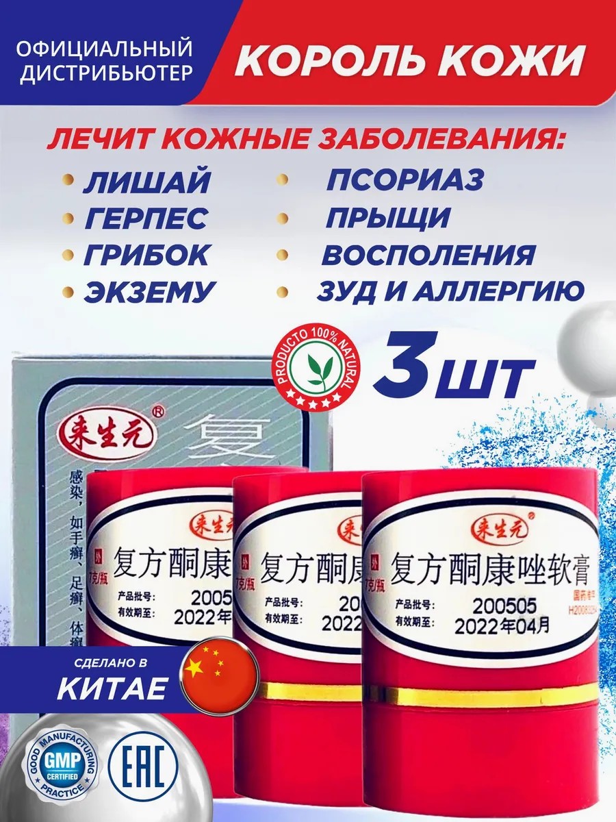 Кароль кожи Король Кожи Лечебная китайская мазь от прыщей псориаза, 3шт