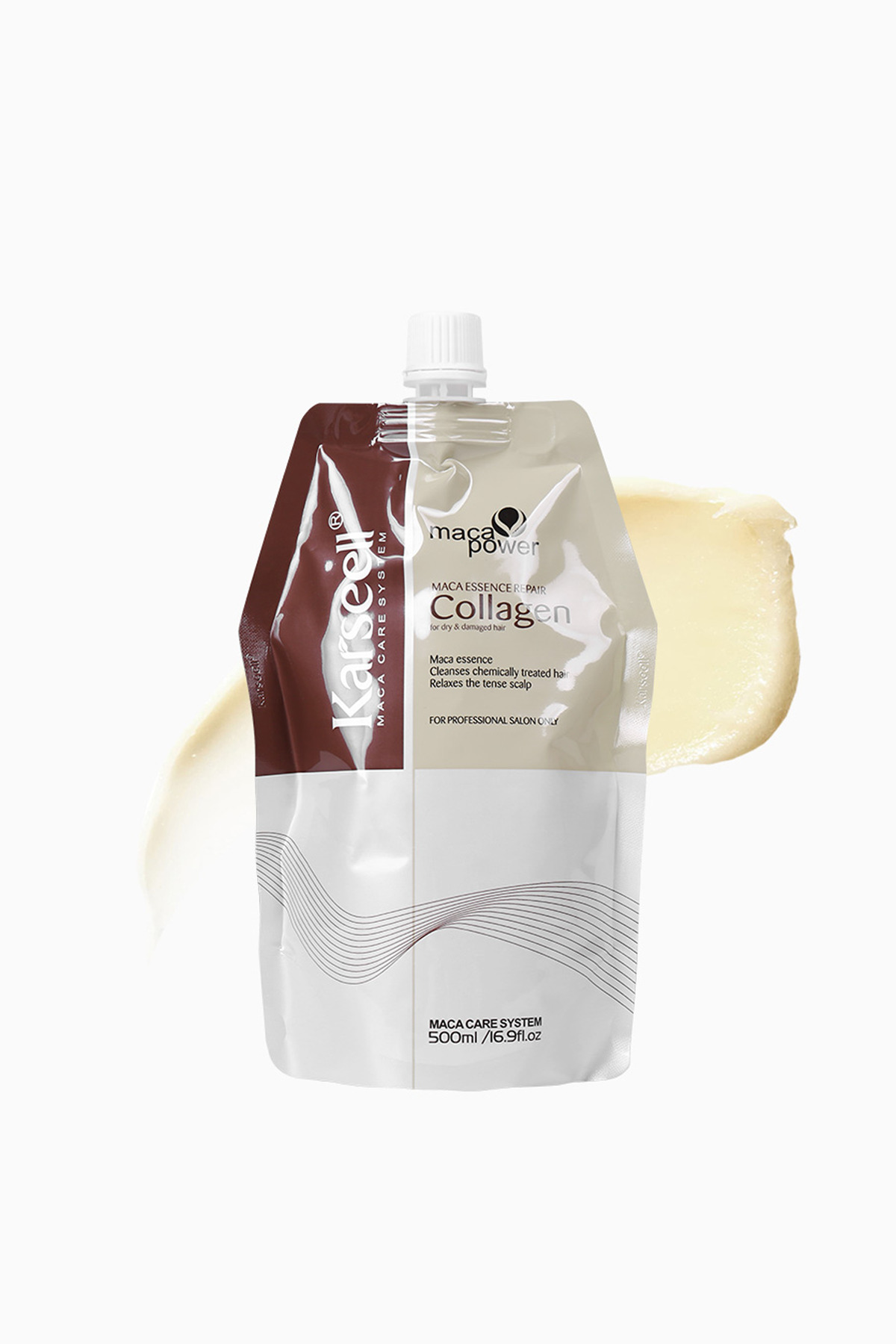 • This product contains rare maca extract and Moroccan argan oil. These are integrated with KARSEELL active collagen vaporization and permeation technology. It repairs hair fibers by providing energy to damaged hair from root to tip and fills the hair gaps, leaving the hair moist, tidy, soft and shiny.
