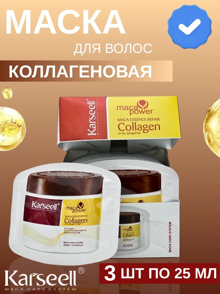 KARSEELL Karsееll Маска для волос с коллагеном 3шт по 25мл