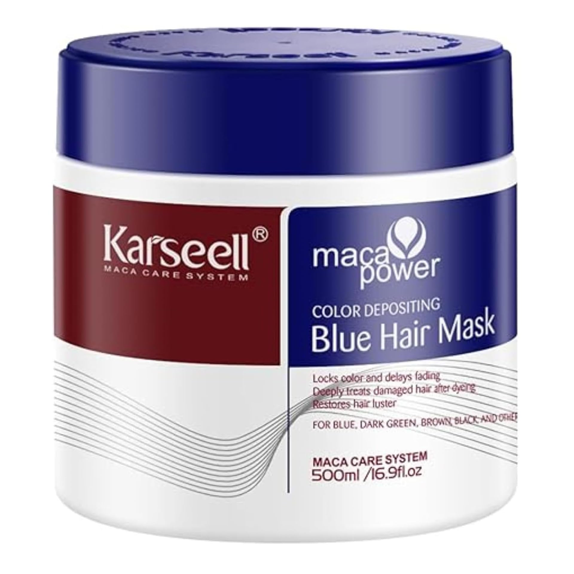 Karseell MACA CARE SYSTEM Blue pigment hair mask nourishing moisturizing repairing antifrizz enhanced blue for dry damaged hair 500 ml
