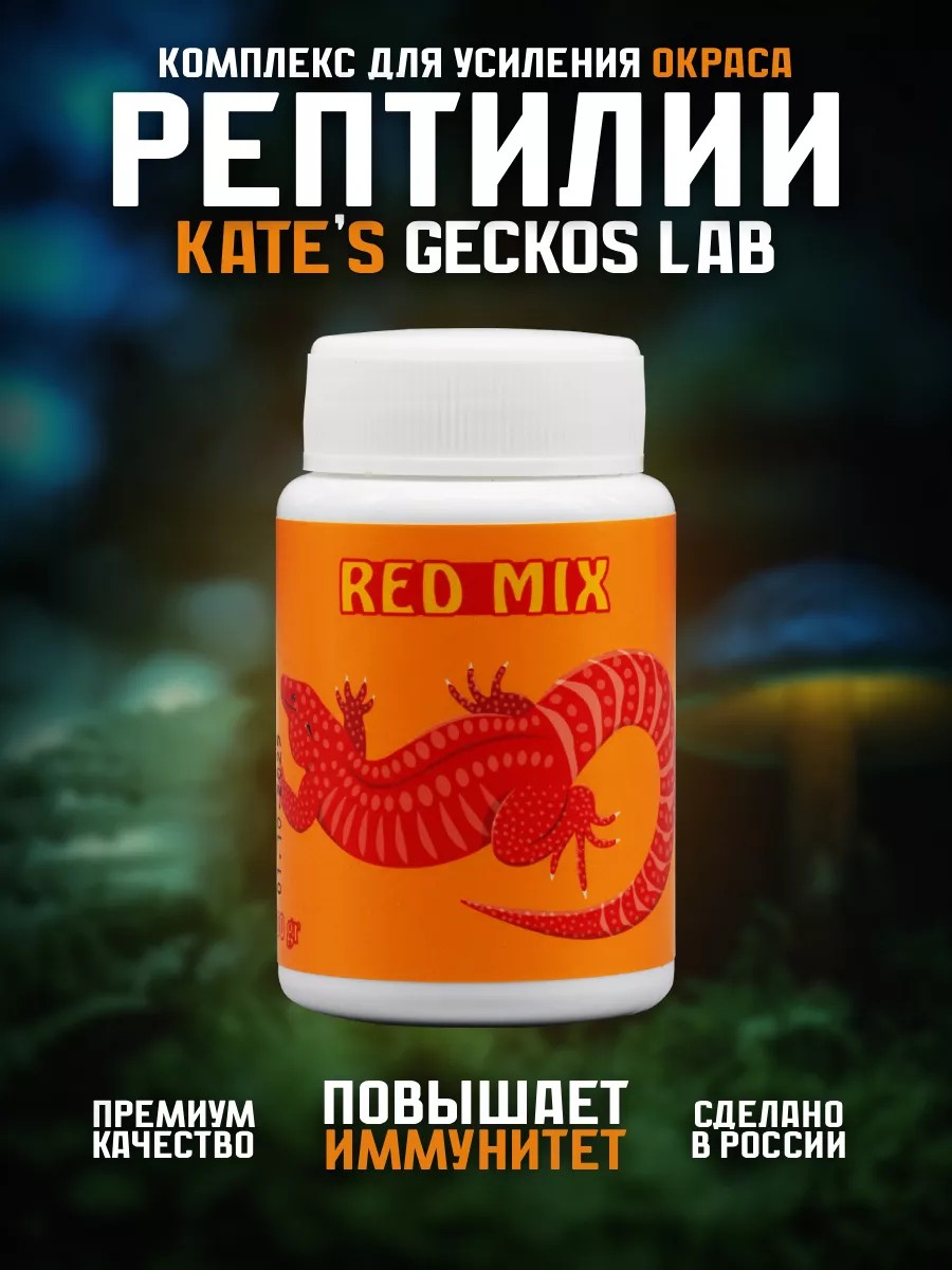 Kate’s Geckos Lab RED Mix Комплекс каротиноидов для улучшения рациона и усиления красной, оранжевой и желтой окраски рептилий, амфибий, рыб и птиц Кейтс Геккос Лаб Рэд Микс. Является отличным источником антиоксидантов и подходит для (эублефар, агама,ящереца, хамелеон, черепаха, фельзума, токи и др.) и амфибий (древолаз, литория, рогатка, водонос и др.). Улучшает аппетит и обмен веществ, повышает иммунитет, увеличивает репродуктивность, способствует обновлению клеток.Она идеально подходит для использования в террариуме, обеспечивая питательные и сбалансированные элементы для роста и здоровья ваших любимцев.
