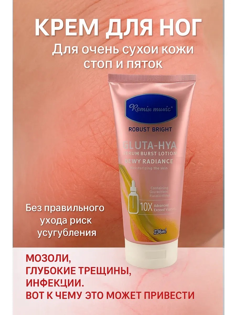 лосьон от сухости кожи тела, крем для огрубевшей кожи, средство от трещин на ногах, лосьон с гиалуроновой кислотой, крем с ниацинамидом и глутатионом
