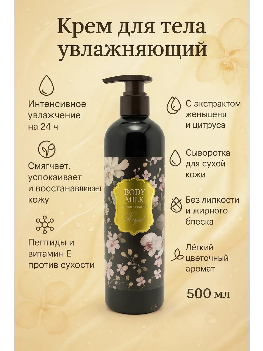 Ищете универсальный крем для тела, который подарит коже увлажнение, питание и бархатистость с первого применения? Представляем вам увлажняющий лосьон для тела Body Milk Angel Heart — средство нового поколения, созданное для деликатного ухода за сухой и чувствительной кожей. Это не просто лосьон, а настоящая сыворотка для тела, сочетающая эффективность активных компонентов и удовольствие от нежного цветочного аромата.
