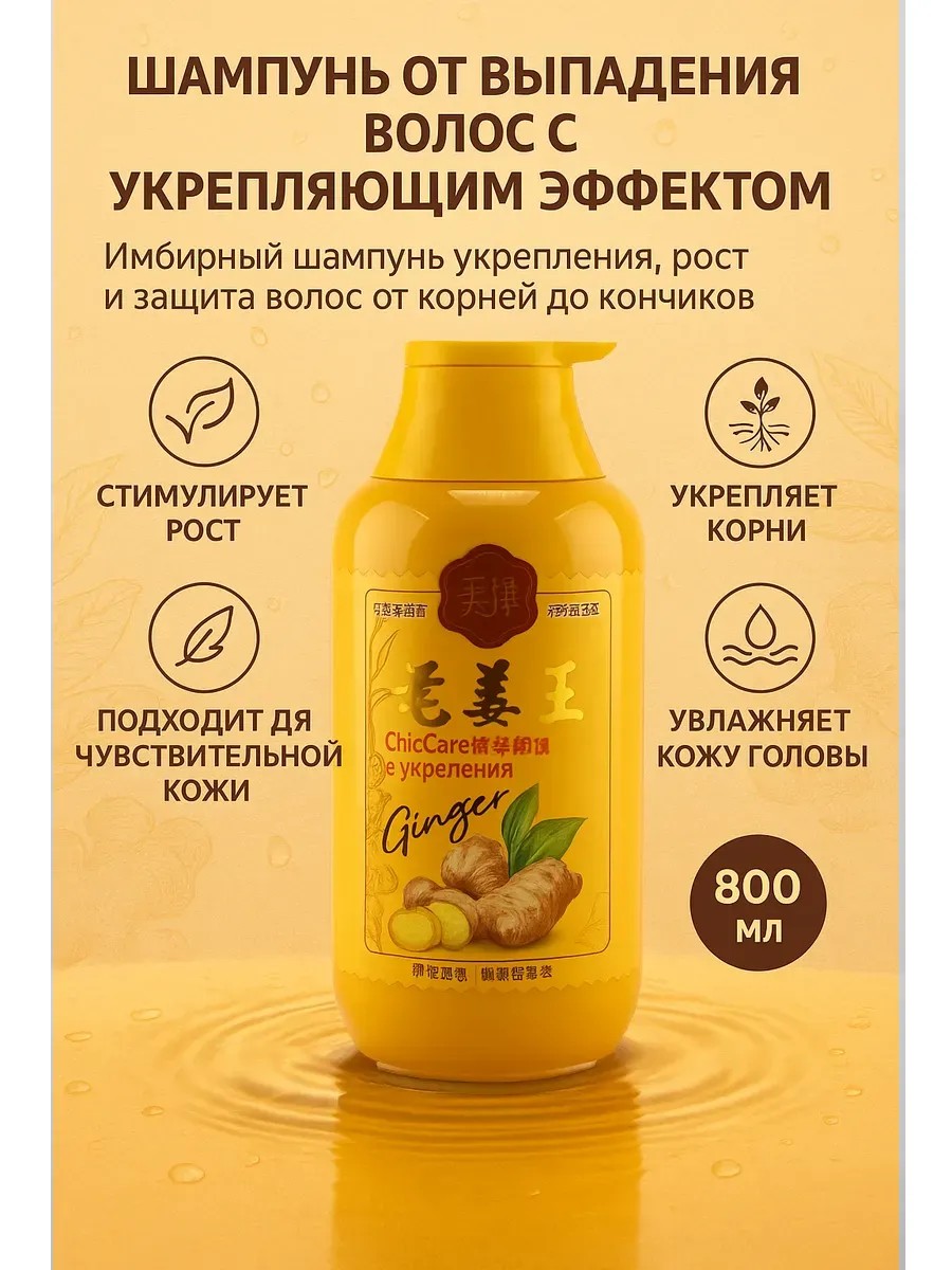 Лечебный имбирный шампунь от зуда кожи головы женский ChicCare — натуральное средство от выпадения и для укрепления волос, созданное на основе традиционных восточных компонентов.