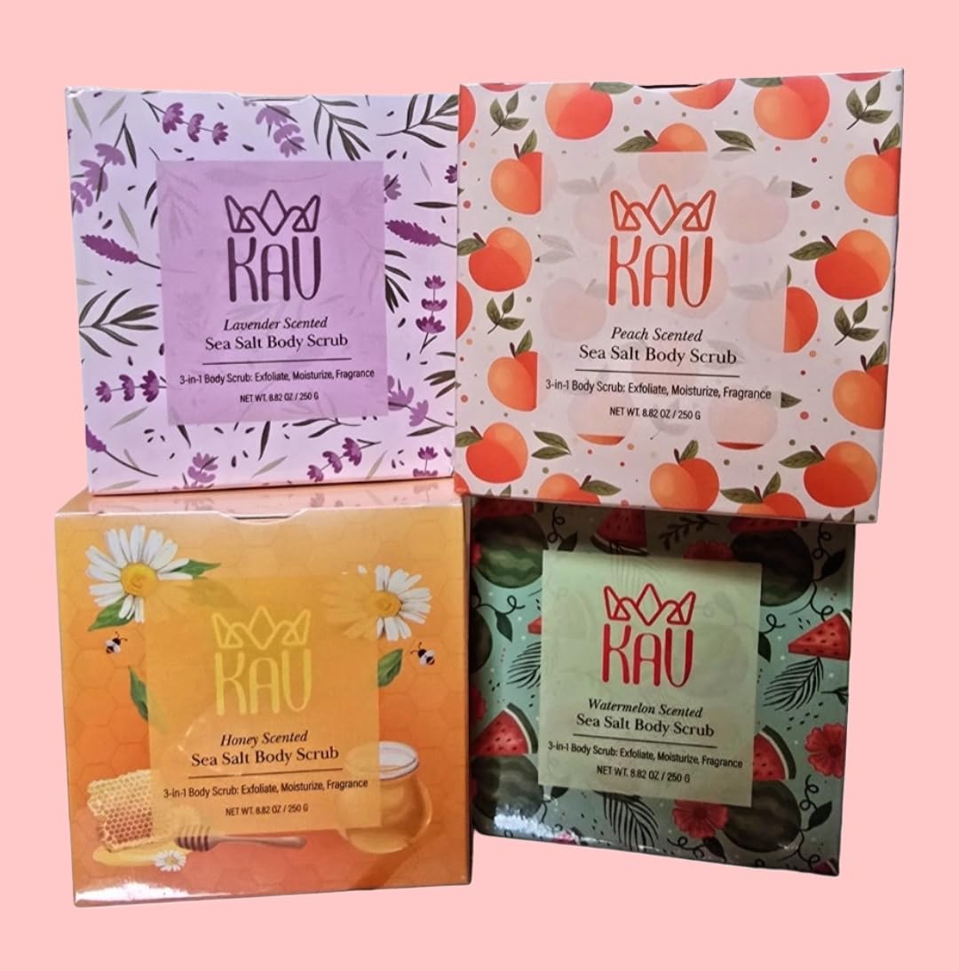 Body, and foot scrub will nourish and hydrate your skin. The oils are extracted from natural ingredients such as coconut oil, jojoba oil, aloe, almond oil, nicotinamide, and vitamin E. The oils are known for their moisturizing properties and can help to soothe and soften dry, rough, and damaged skin. NATURAL INGREDIENTS - This body scrub is made with natural ingredients that are safe for all skin types. The ingredients are free from harsh chemicals, parabens, and sulfates. The scrub is also vegan friendly, making it a great choice for those who follow a plant-based diet. GENTLE EXFOLIATION - The exfoliating salt scrub is gentle enough for daily use. The fine grain salt will exfoliate the skin without causing any irritation or redness. The scrub will also help to remove dead skin cells, dirt, and oil from the skin, leaving it feeling refreshed and revitalized. MOISTURIZE AND SOFTEN - The body scrub contains rich and precious oils that will nourish and hydrate your skin. The oils will penetrate deep into the skin, leaving it feeling soft, smooth, and supple. The scrub will also help to reduce the appearance of cellulite and stretch marks, leaving your skin looking more toned and youthful. VERSATILE - This body scrub can be used on all parts of the body, including the face, body, and feet. The scrub is also great for use as a foot scrub to help soften and smooth rough and calloused feet. The scrub is easy to use and rinse off, making it a convenient addition to your daily skincare routine.KAV Lavender Scrub GENTLE EXFOLIATION - The exfoliating salt scrub is gentle enough for daily use. The fine grain salt will exfoliate the skin without causing any irritation or redness. The scrub will also help to remove dead skin cells, dirt, and oil from the skin, leaving it feeling refreshed and revitalized. KAV Honey Scrub MOISTURIZE AND SOFTEN - The body scrub contains rich and precious oils that will nourish and hydrate your skin. The oils will penetrate deep into the skin, leaving it feeling soft, smooth, and supple. The scrub will also help to reduce the appearance of cellulite and stretch marks, leaving your skin looking more toned and youthful. KAV Peach Scrub NATURAL INGREDIENTS - This body scrub is made with natural ingredients that are safe for all skin types. The ingredients are free from harsh chemicals, parabens, and sulfates. The scrub is also vegan friendly, making it a great choice for those who follow a plant-based diet.and Vegan. KAV Watermelon Scrub Body, and foot scrub will nourish and hydrate your skin. The oils are extracted from natural ingredients such as coconut oil, jojoba oil, aloe, almond oil, nicotinamide, and vitamin E. The oils are known for their moisturizing properties and can help to soothe and soften dry, rough, and damaged skin.