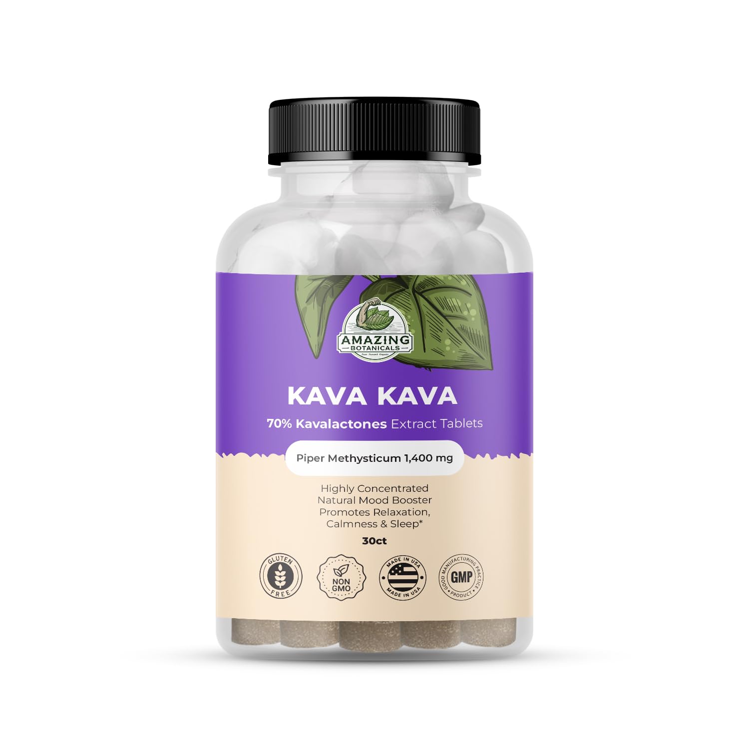 Kava Kava Extract Tablets High Potency 70% Kavalactones Extract, 140mg of Fresh Piper Methysticum per Serving, Kavalactones Root Extract Boosts Mood, Promotes Relaxation, Relieves Tension 30 Tablets