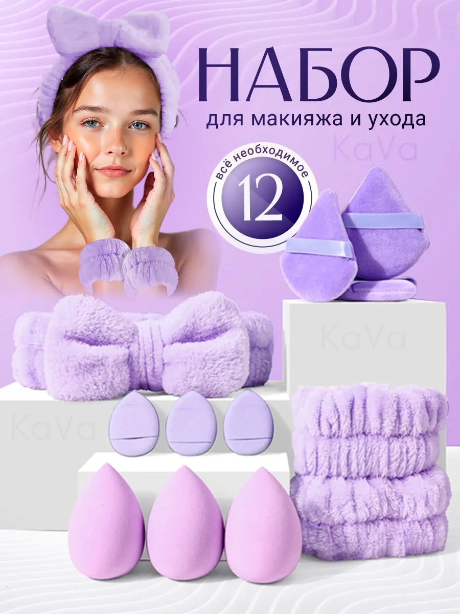 Отличный вариант для полного ухода - набор спонжей с повязкой. Для нанесения базы и геля, румяна для щек, тени для век, уход за губами, скульптор для контуринга, тональных средств. Предназначены для нанесения на кожу сухих и жидких текстур. Чтобы при создании макияжа вам не мешали волосы, мы предлагаем специальную повязку. Такая повязка для умывания идеально подходит для домашнего ухода. Нарукавники защитят одежду от капель и пены, идеальны для умывания, масок. Комплект включает в себя разные фигуры и размеры, чтобы вы могли выбрать подходящий для каждой зоны и легко дотягиваться до всех уголков. Спонжи для макияжа хорошо корректируют, подходят для любого типа кожи. Благодаря этому, вы сможете достичь идеального наносить даже на труднодоступных местах, таких как подглазные круги или носовые складки. Подходят для формирования контуров и хайлайтеров. При использовании пуховки для пудры или теней она должна быть сухой. Каждый спонжик изготовлен из высококачественного материала, который позволяет ровное покрытие косметики и максимальный комфорт. Предмет не впитывает много средства и дозировано отдает, маскирует расширенные поры и скрывать шелушения. Просто моются и долго сохраняют свой вид и качество. Вы можете пользовать их многократно, что делает их экономичным выбором для вашей косметички. Набор удобен для путешествий, похода в баню и салонов.