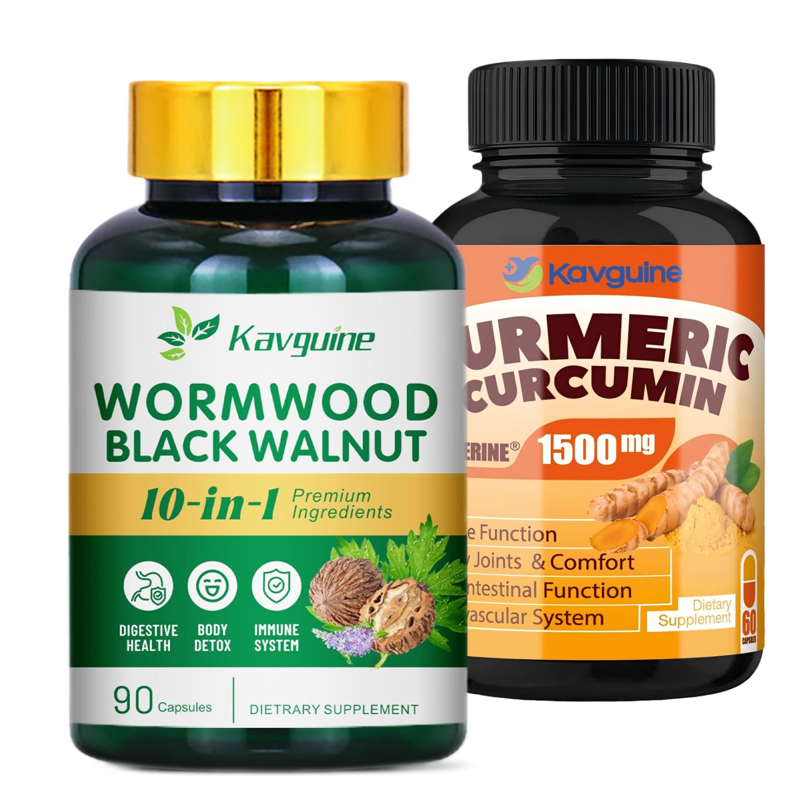 Enhance your wellness routine with the Kavguine Digestive Joint Health Support Bundle. This powerful combo includes 10-in-1 Wormwood Capsules and Organic Turmeric Curcumin Supplements, designed to support digestive health, liver detox, joint comfort, and overall wellness. The wormwood formula promotes gut health and internal balance, while the turmeric curcumin supplement helps ease joint discomfort and supports an active lifestyle. Both products are crafted with premium, plant-based ingredients, are vegan-friendly, non-GMO, and made in cGMP-certified facilities for the highest quality. Whether you're looking to maintain gut health or improve joint flexibility, this bundle is the perfect addition to your daily routine.
