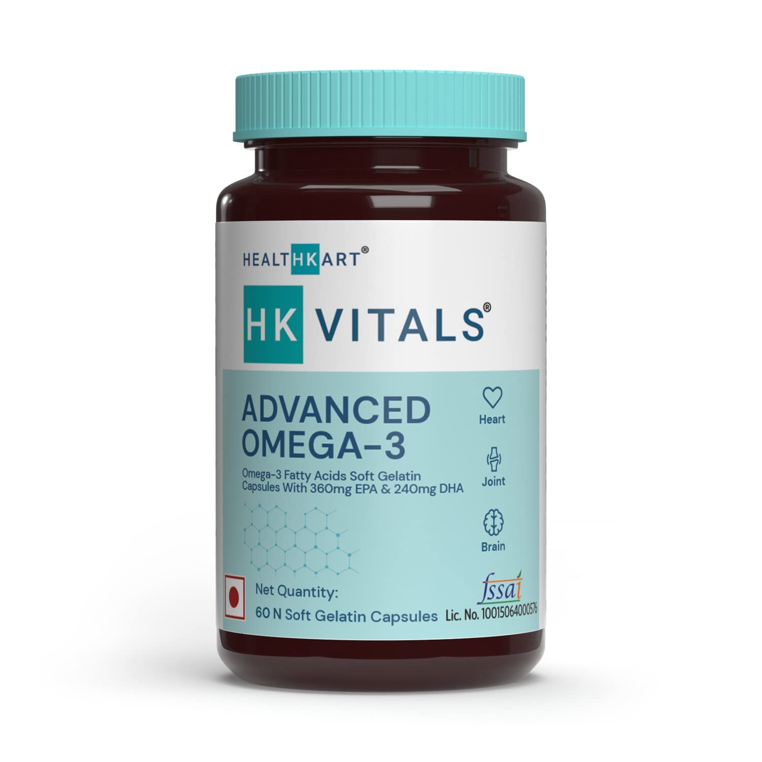 Kavir HK Vitals Advanced Omega 3 1000 mg Omega 3 with 360 mg EPA & 240 mg DHA Double Strength Fish Oil Supplement for Brain Heart and Joint Health 60 Capsules