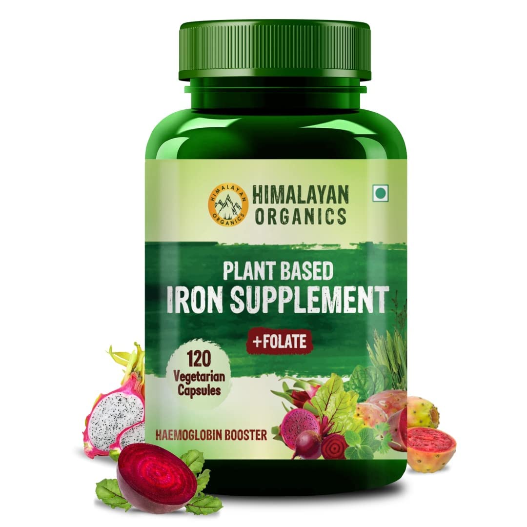 Kavir Plant Based Iron Supplement with Folate | Improved Hemoglobin & Oxygen Capacity | Stomach Friendly | Boost Energy - 120 Veg Capsules