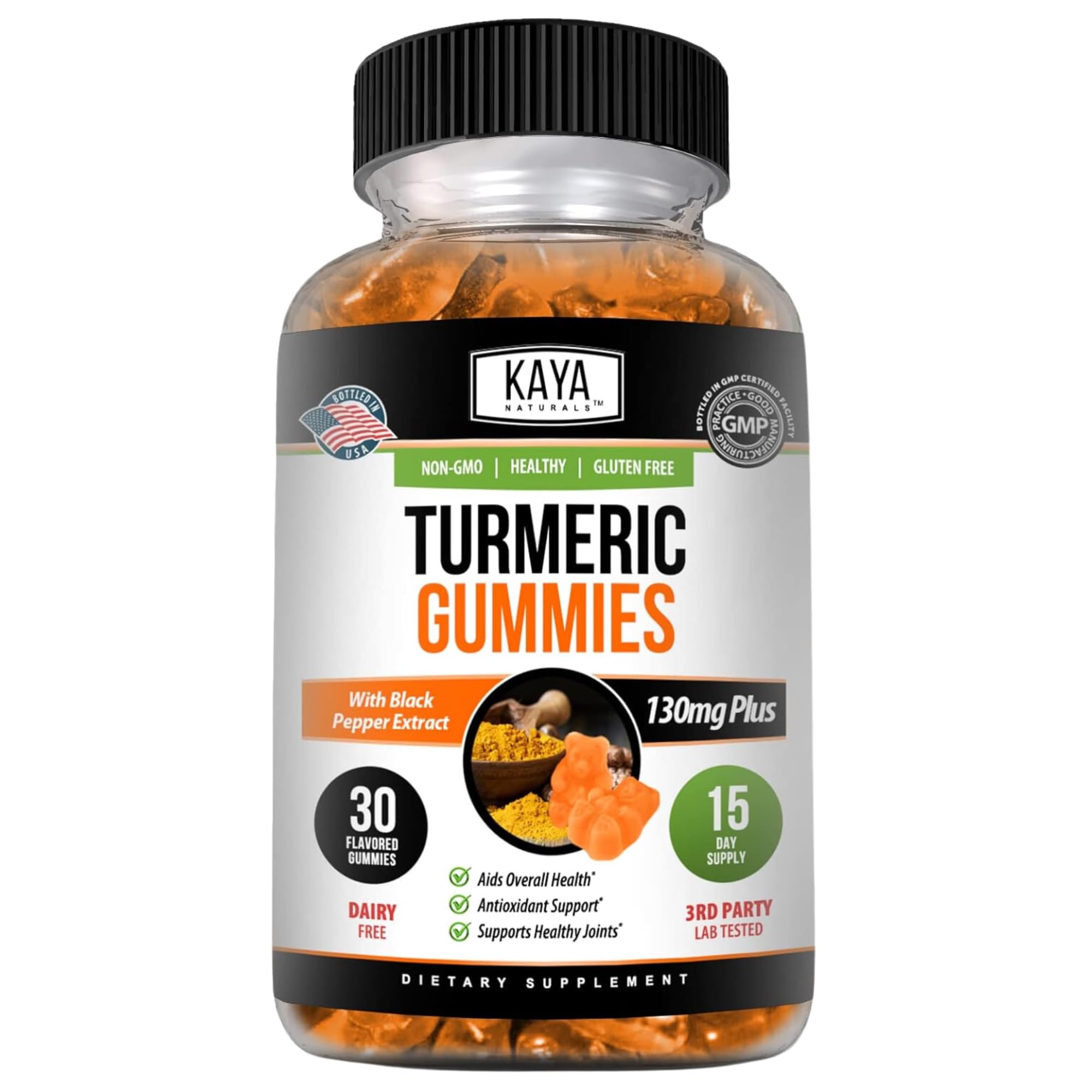 Kaya Naturals Turmeric Supplements Gummies - Pure Nature Turmeric Curcumin -Turmeric Ginger Gummies - 30 Count Gummy - Turmeric with Black Pepper Extract 30 Count (Pack of 1)