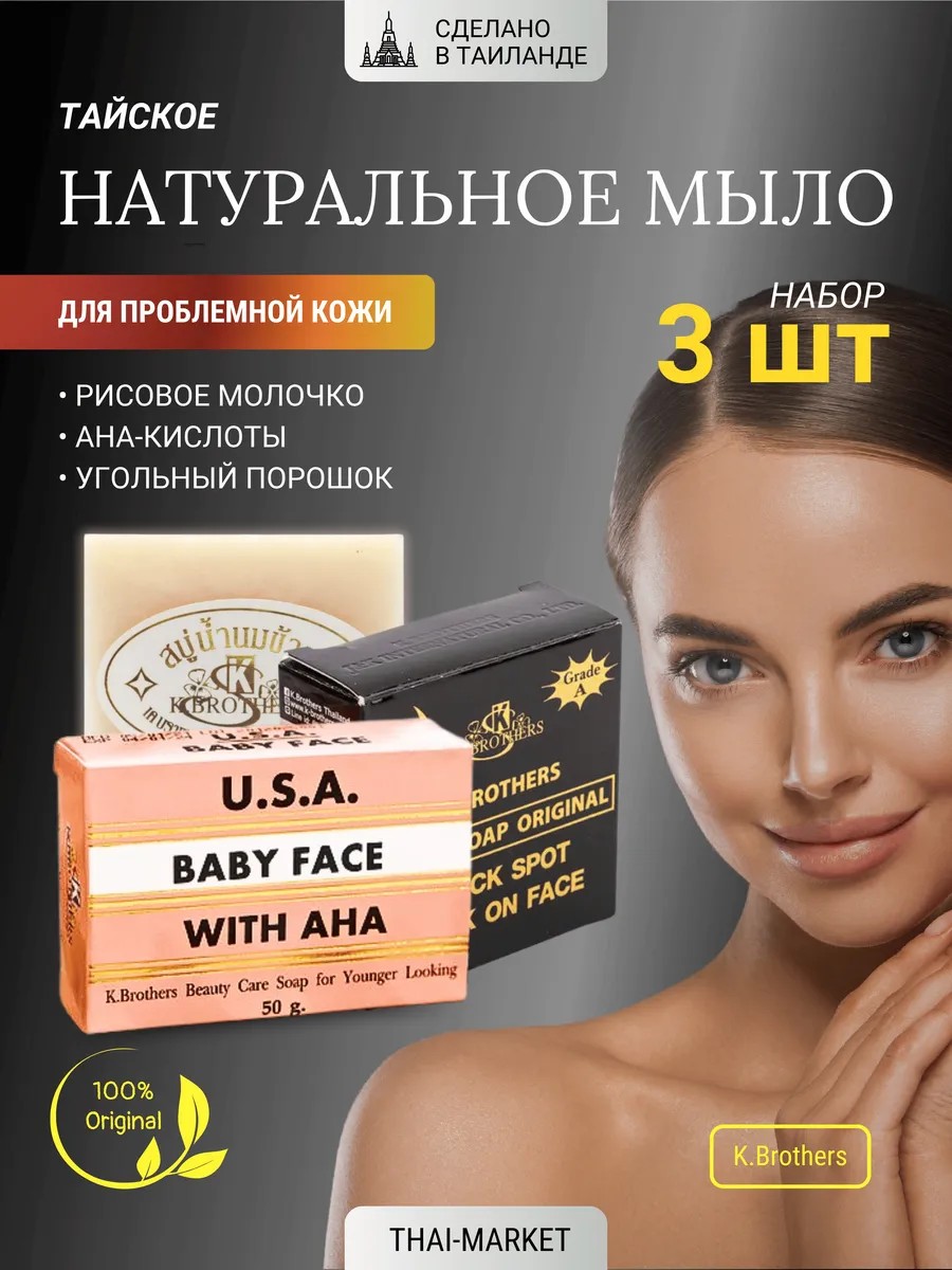 | Package contents | Rice Milk Soap for face and body - 1 pc; Baby Face with AHA acids for face and body - 1 pc; Black Soap Original for face and body - 1 pc |