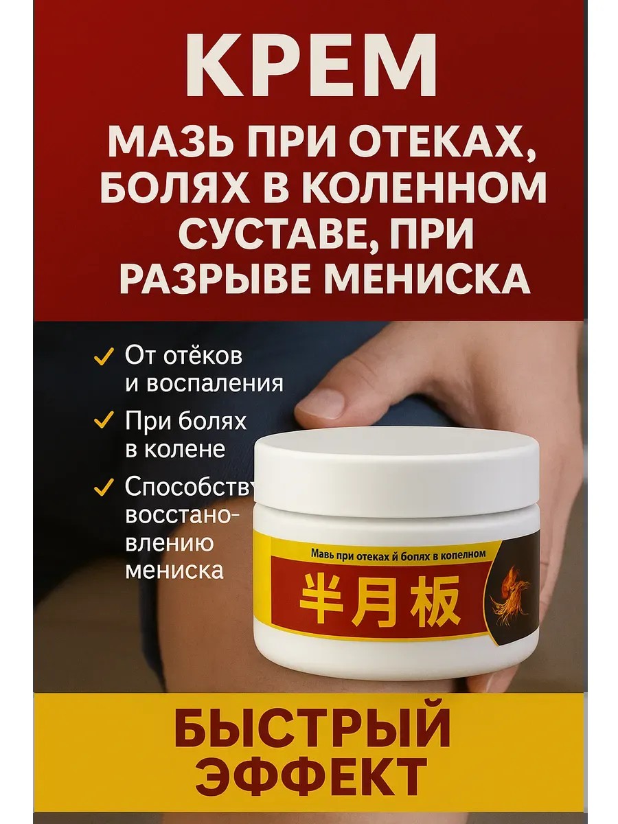 крем мазь при боли в колене артрозе разработана для ухода за коленным суставом эффективная при боли отеке разрыве мениска. Она содержит натуральные компоненты, которые оказывают противовоспалительное и обезболивающее действие, способствуя уменьшению отека и боли. Регулярное применение мази-крема может помочь улучшить подвижность сустава и ускорить процесс восстановления. Перед применением рекомендуется проконсультироваться с врачом.Китайская чудо-мазь GUCALLO — это эффективное средство от боли, воспаления и отёков в области коленного сустава. Особенно полезна при повреждении или разрыве мениска, а также после спортивных или бытовых нагрузок. Мазь разработана на основе традиционных восточных рецептов и содержит только натуральные экстракты, что обеспечивает безопасное и быстрое действие.