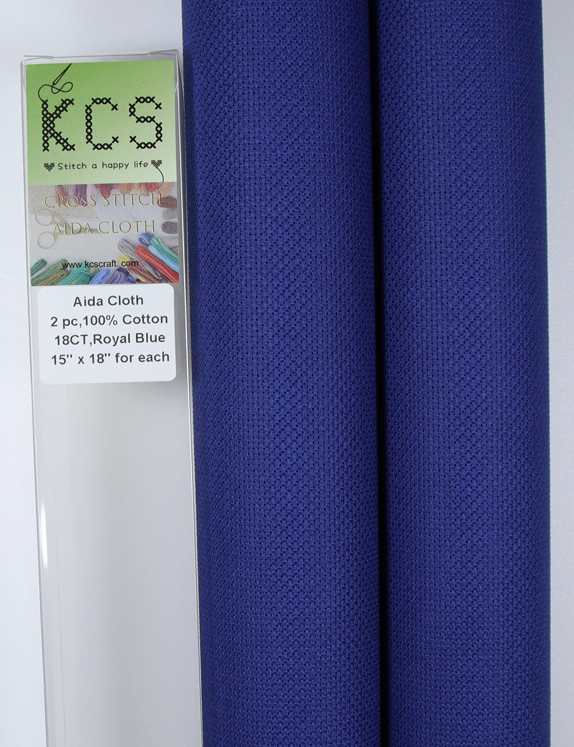 KCS 2 pc of 15" x 18" Counted Cross Stitch Cotton Aida Cloth Needlework Fabric (Royal Blue 18CT) Royal Blue 18CT