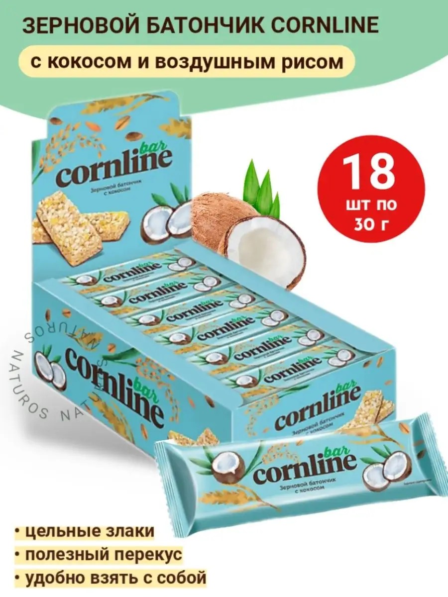 Батончик с кокосом из цельных злаков Cornline, 18 шт по 30 г