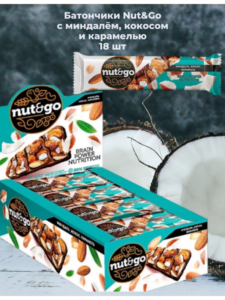 Миндальный батончик NUT AND GO кокос с карамелью 18 шт