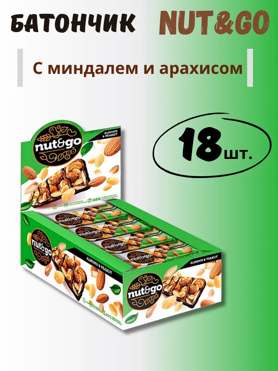 Миндальный батончик NUT AND GO с арахисом 18 шт