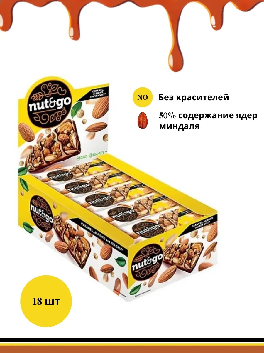 Батончик Nut and Go – идеальная композиция из цельного хрустящего миндаля, классической солёной карамели с добавлением морской соли для пикантности.Благодаря щедрой порции миндаля (в составе батончика его более 50%), это лакомство – отличный источник энергии, белка, витаминов и аминокислот. Так, в одном батончике содержится треть суточной нормы «витамина молодости» – токоферола (витамин Е) и марганца, играющего ключевую роль в выработке коллагена. Также миндаль богат Омега-3, необходимой для улучшения памяти и концентрации внимания.Nut and Go миндальный – отличный вариант для вкусного и полезного перекуса в любой ситуации: на занятиях, в офисе, на прогулке или в дороге.