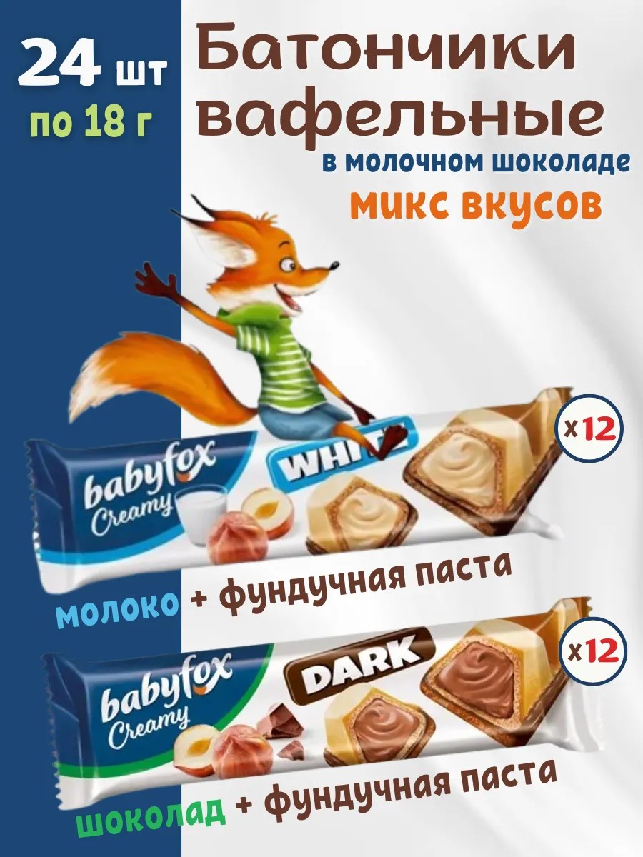 | Комплектация | Батончики детские вафельные BabyFox Creamy White; Батончики детские вафельные BabyFox Creamy Dark |