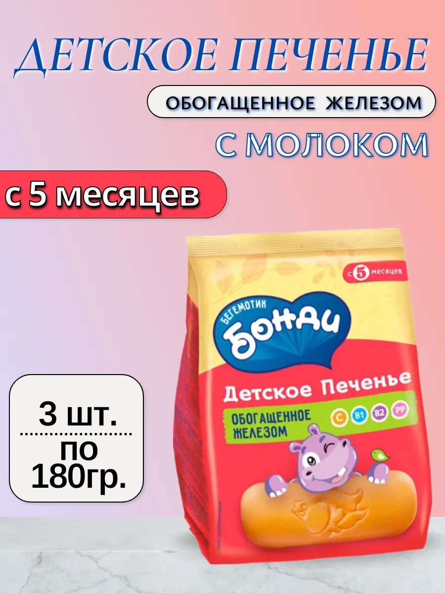 Детское печенье обогащённое железом, 3 шт по 180 г