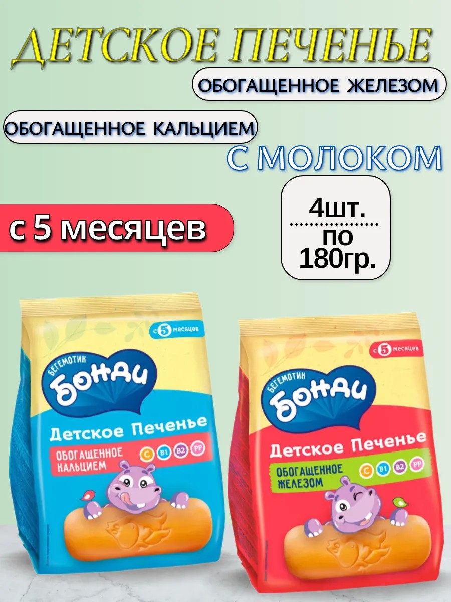 Детское печенье обогащённое железом и кальцией, 180 г