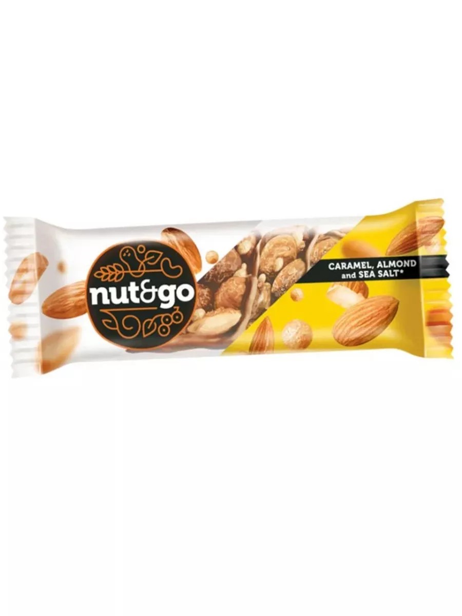 The Nut and Go bar is the perfect combination of whole crunchy almonds, classic salted caramel, and a touch of sea salt for a piquant twist.