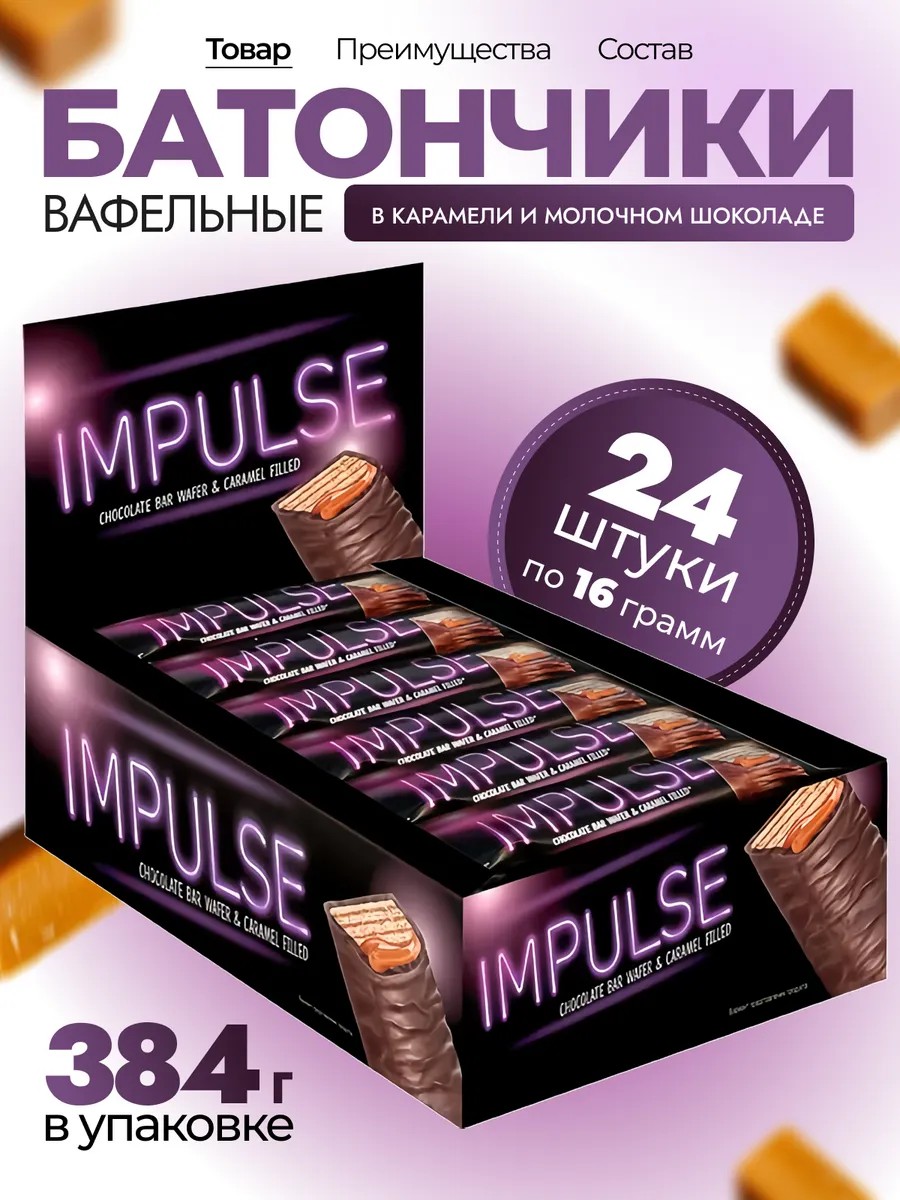 Батончики вафельные в шоколаде Импульс с карамелью 24шт