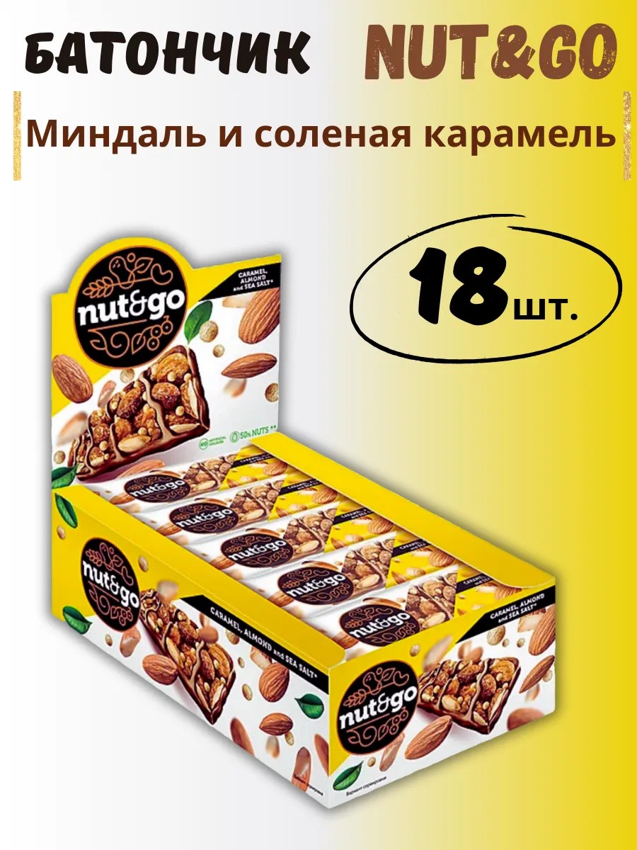 Батончик миндаль и соленая карамель Nut and Go, 18х34г