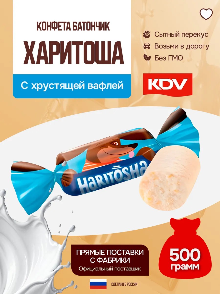 KDV Конфеты Батончик Харитоша неглазирован молочно-вафельн 500г