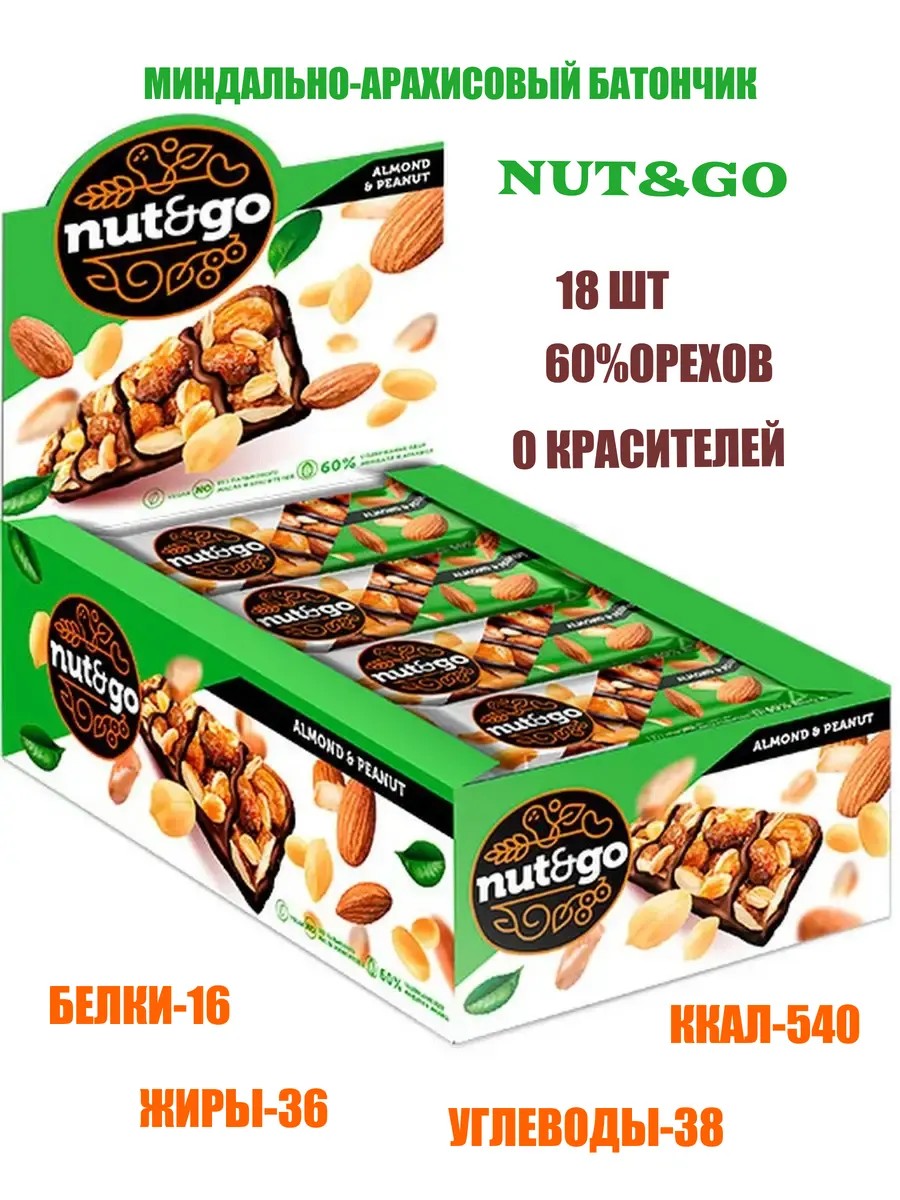 KDV Батончик нат энд гоу миндаль с арахисовой пастой 18шт по 36г