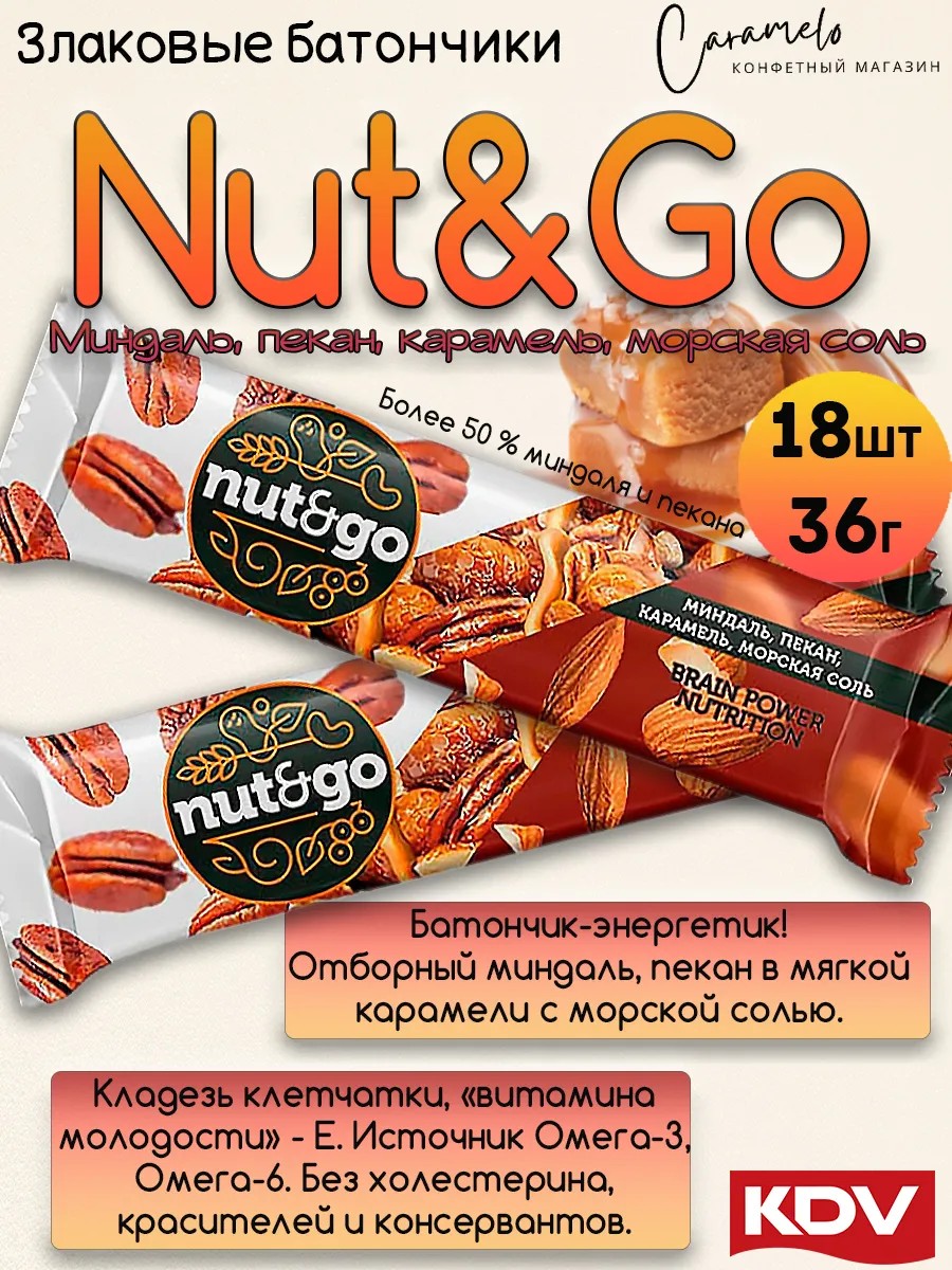 Батончик Nut&Go миндаль,пекан,соленая карамель 18шт 36г