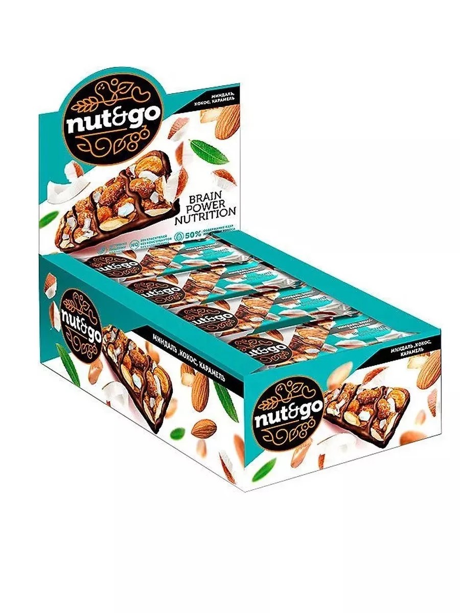 Батончик "Nut&Go"миндаль, кокос, карамель, 18 ш по 36 г