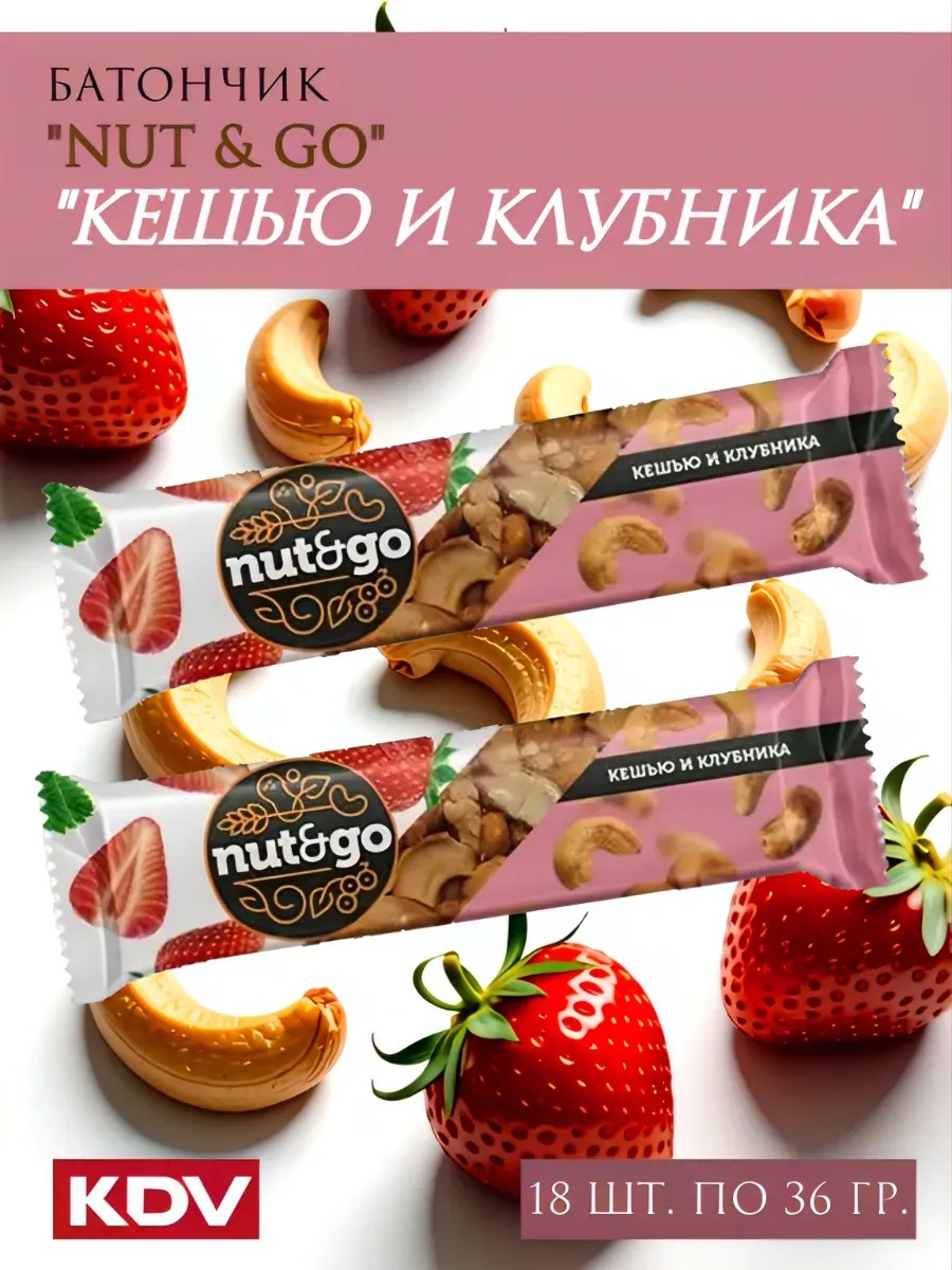 Батончик Nut&Go "Кешью и клубника" от KDV — это идеальный перекус для тех, кто ценит вкус и полезность. Сочетание нежного вкуса клубники и хрустящего кешью создает неповторимый аромат и насыщенный вкус. Батончик содержит не менее 39% кешью и натуральную сушеную клубнику, что делает его не только вкусным, но и питательным. Удобная упаковка из 18 батончиков по 36 грамм позволяет взять его с собой в дорогу, на работу или в школу.