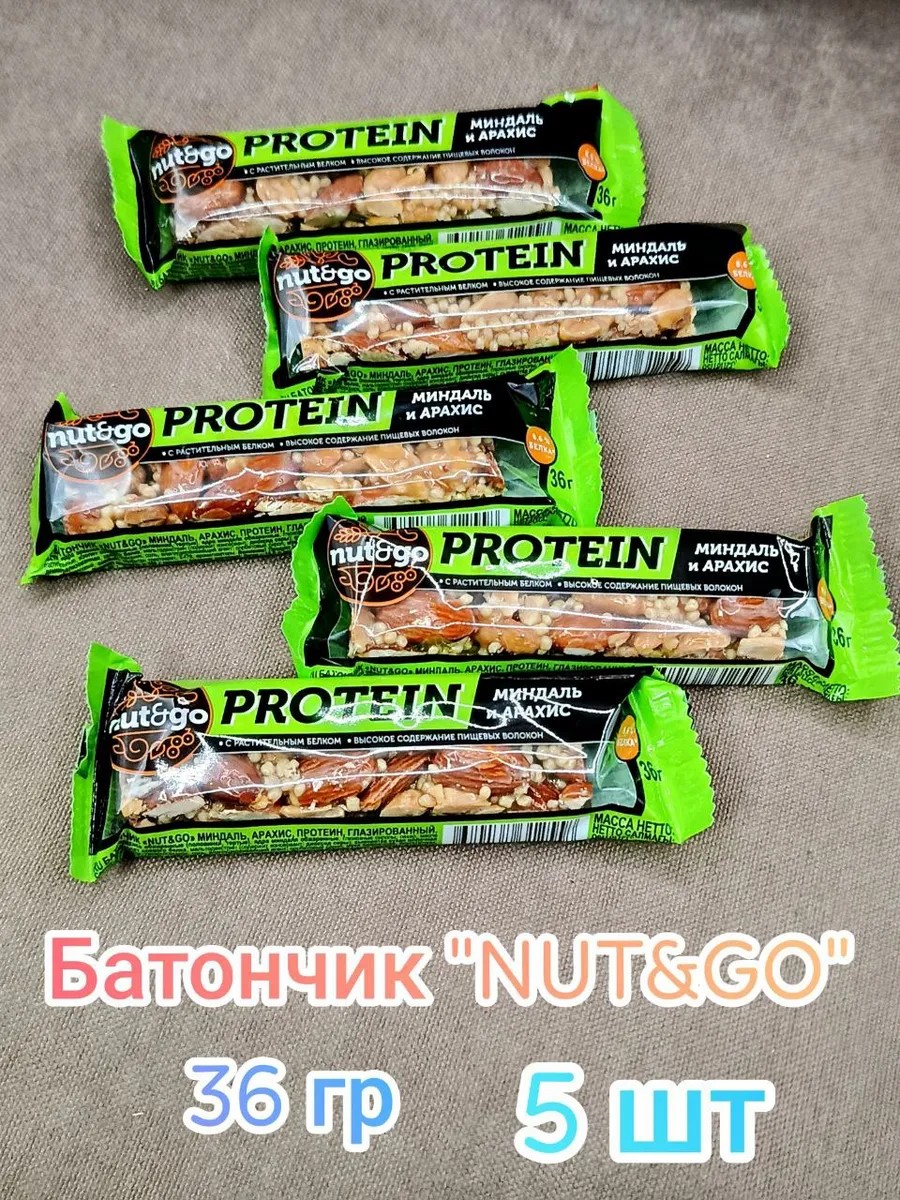 КомплектацияБатончик "NUT&GO" миндаль, арахис, протеин, глазированный 36 гр - 5 шт