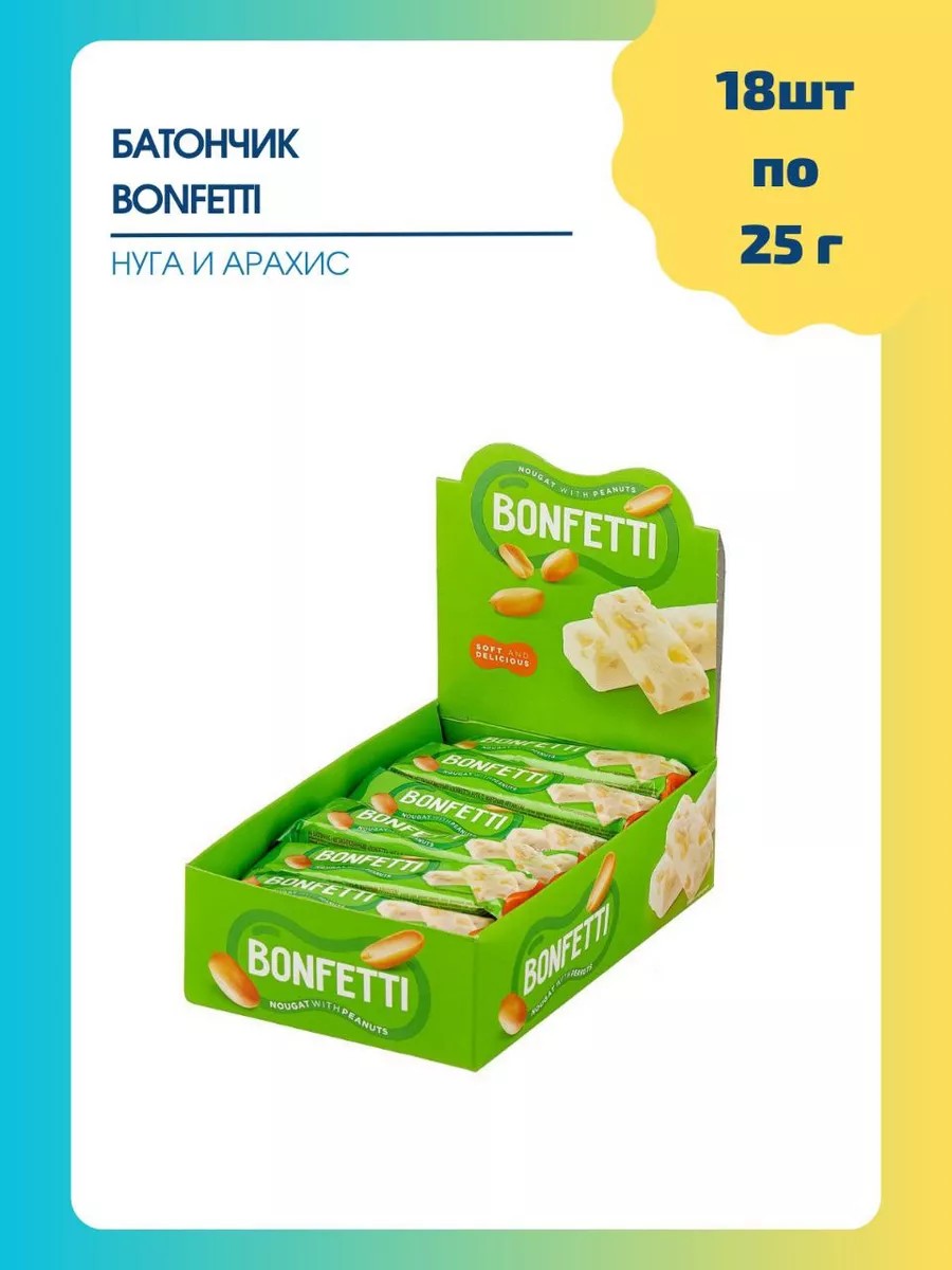 Батончики Bonfetti нуга и орехи 18 штук по 25г