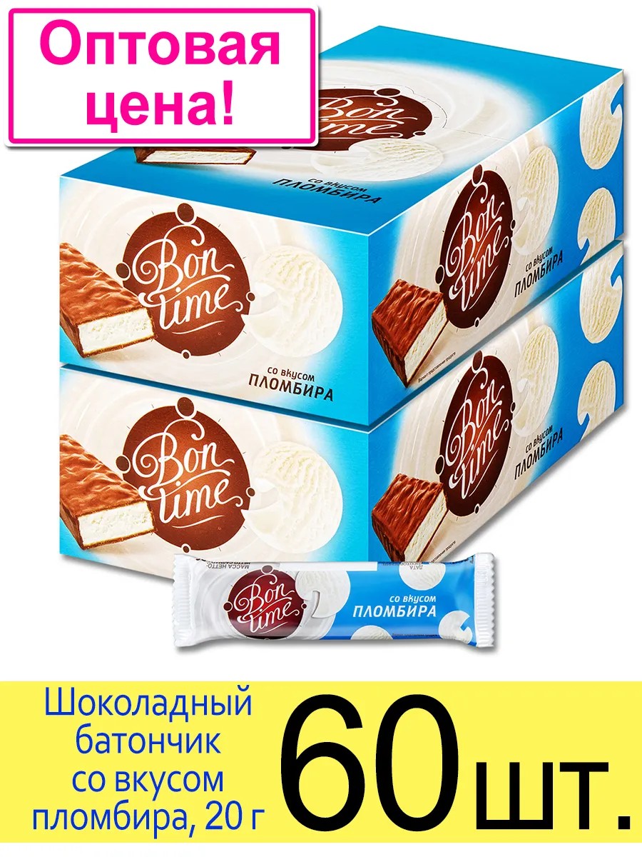 You can buy the BonTime ice cream-flavored chocolate bar both retail and profitably purchase wholesale in sets of 3, 5, 10, 30, 60 pieces per set. The price depends on the number of units in the set; the larger the set, the lower the price. Purchasing a BonTime chocolate bar in a set of several packages allows you to save up to 30% on the cost of one bar. Shipped in a cardboard box.