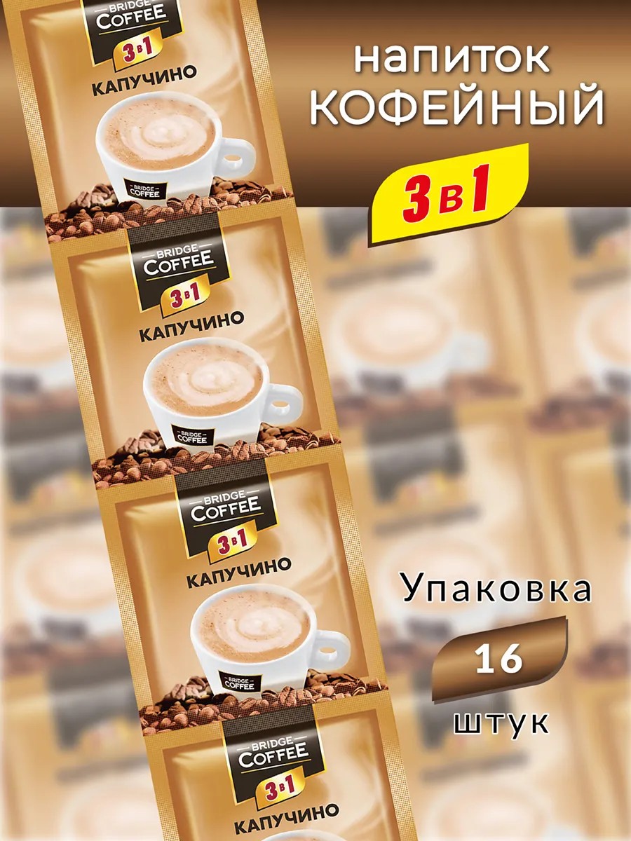 Кофе Bridge Coffee 3 в 1, со вкусом КАПУЧИНО. В упаковке 16 пакетиков по 20 грамм. С натуральным кофе.