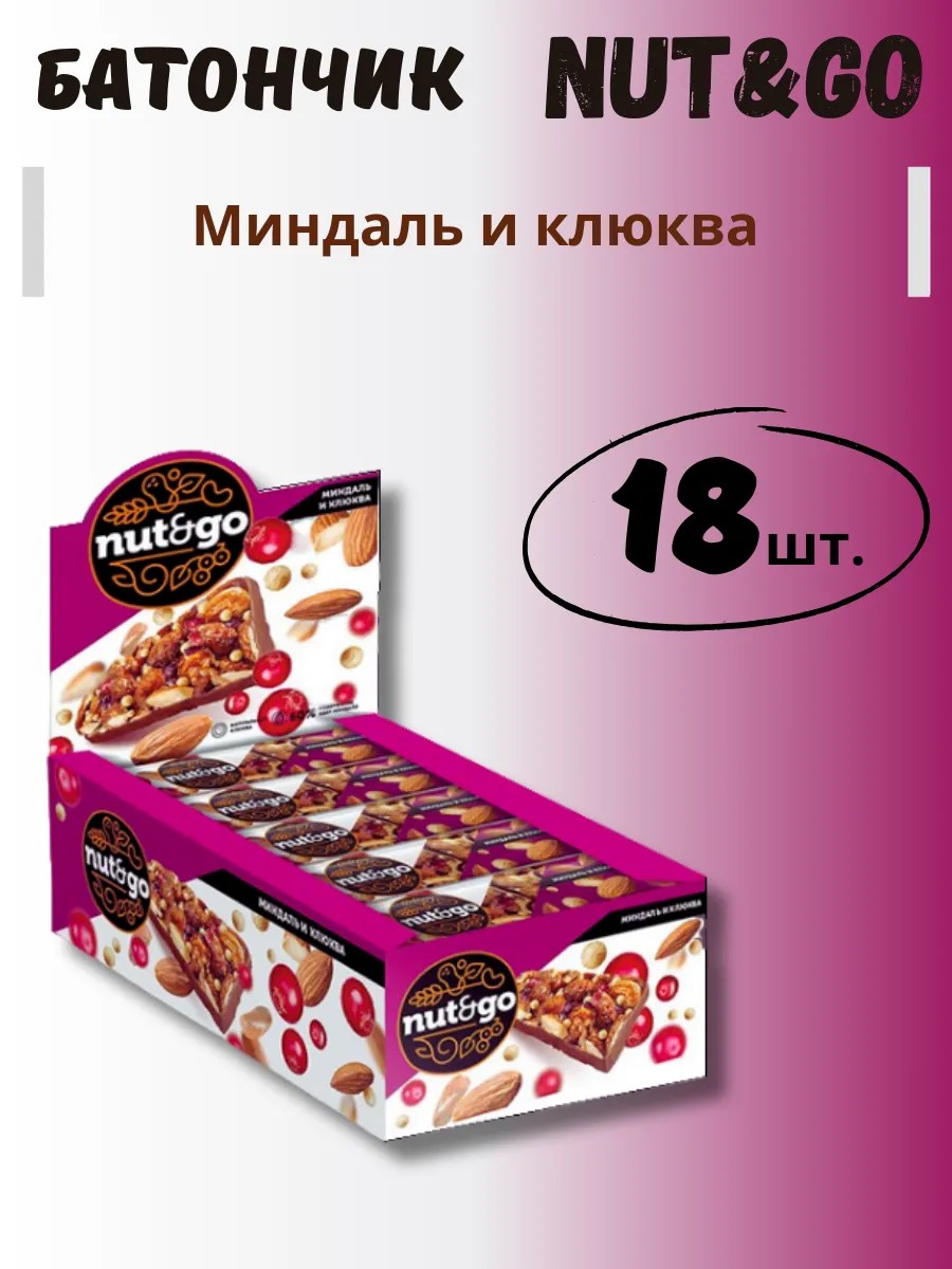 Батончик злаковые с миндалём и клюквой Nut and Go 18 шт