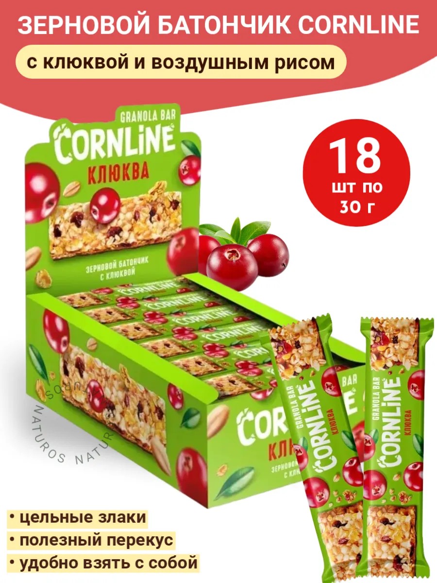 KDV Батончик злаковый с клюквой Cornline зерновой, 18 шт по 30 г