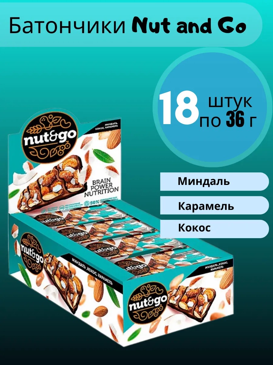 Злаковые батончики Nut and Go Миндаль Карамель Кокос 18шт