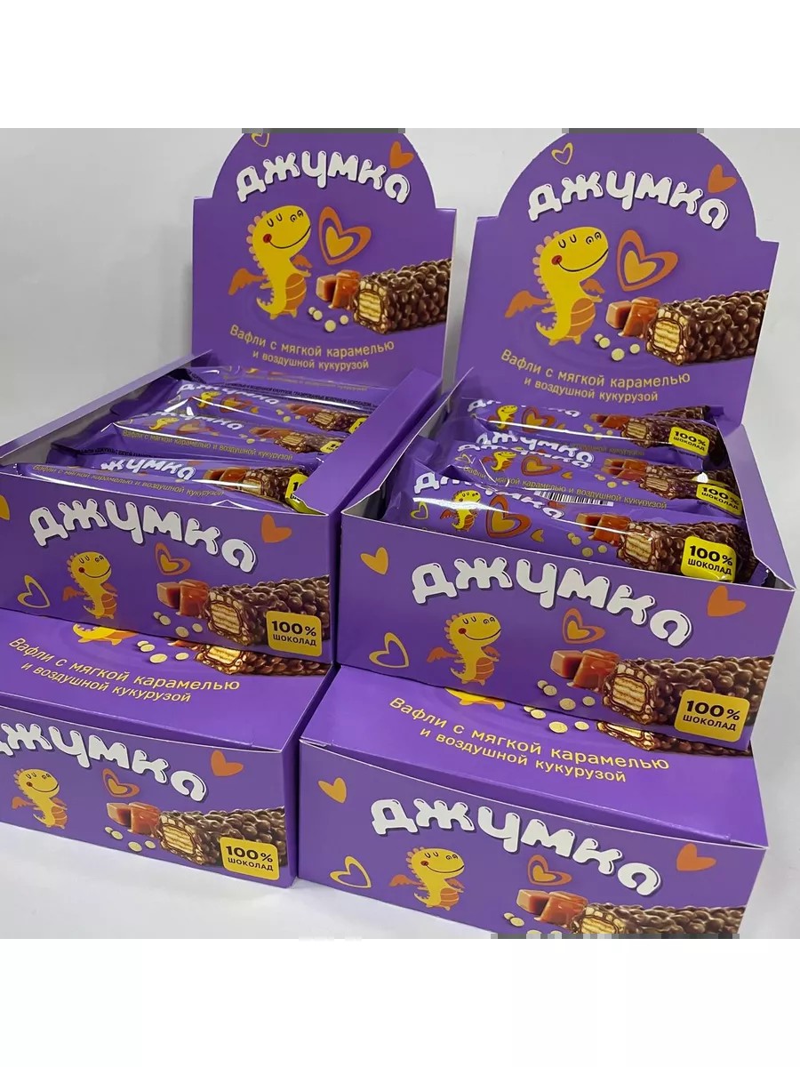 Батончик Джумка-хрустящая вафля с мягкой карамелью, воздушной кукурузой в молочно-шоколадной глазури.