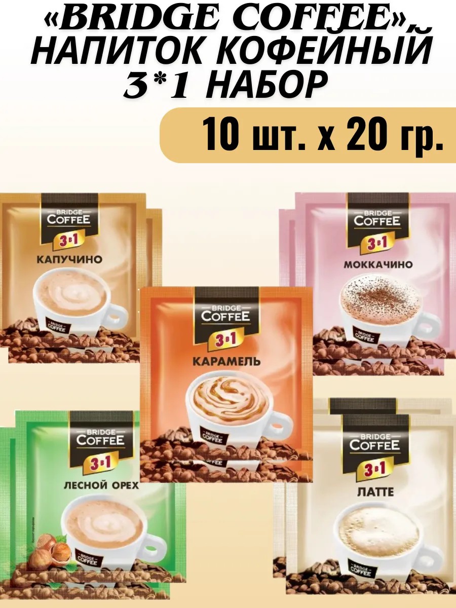 Набор кофе из себя представляет несколько пакетиков разного вида: капучино, моккачино, лате, карамель, лесной орех.