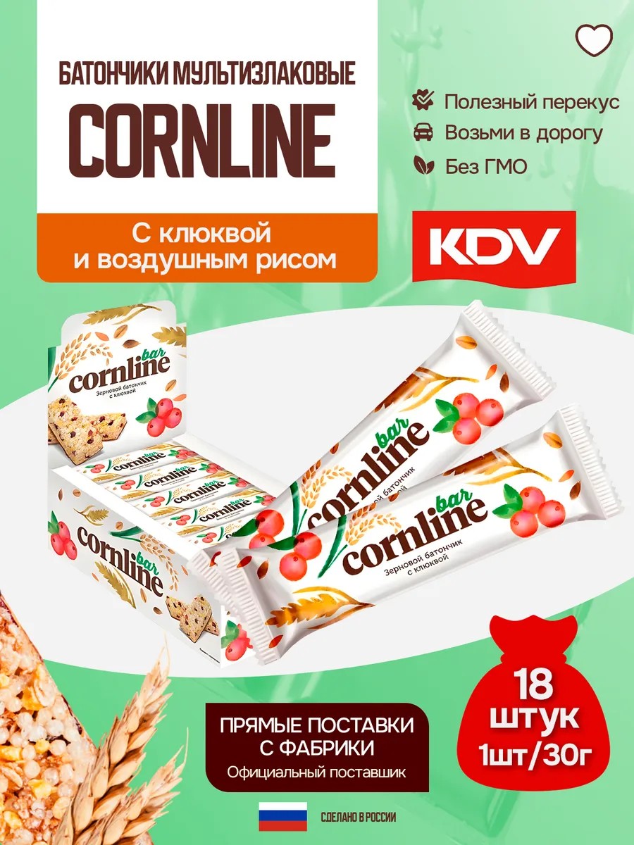 Батончик из злаков Cornline с клюкв и возд рисом 18ш по 30г