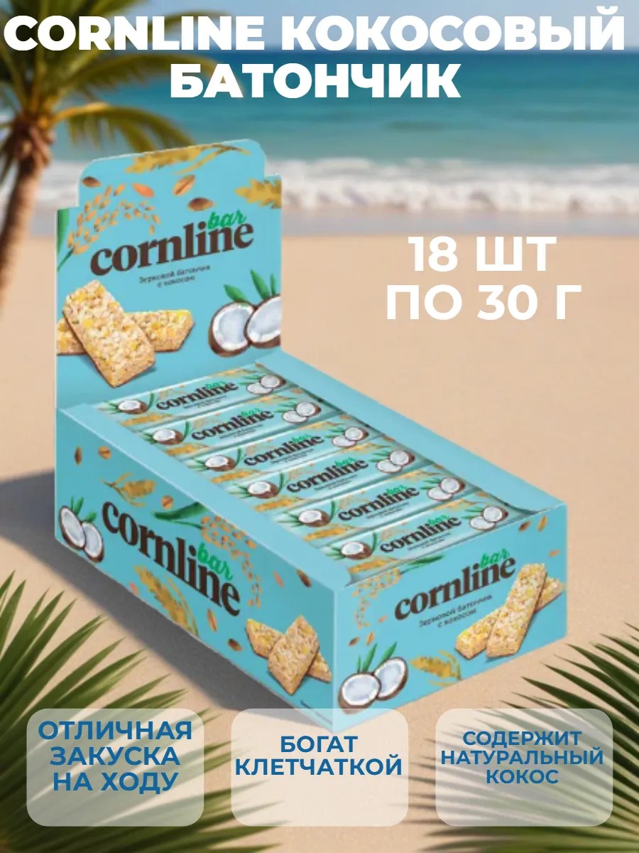 Представляем вашему вниманию Cornline – зерновой батончик с кокосом в удобной упаковке 30 г.