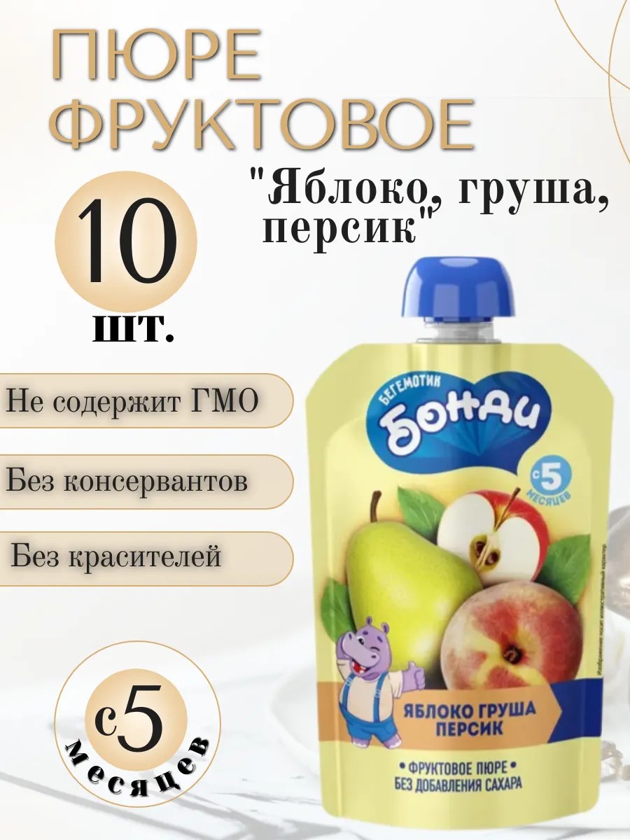 Пюре фруктовое «Яблоко, груша и персик», 10шт по90 г