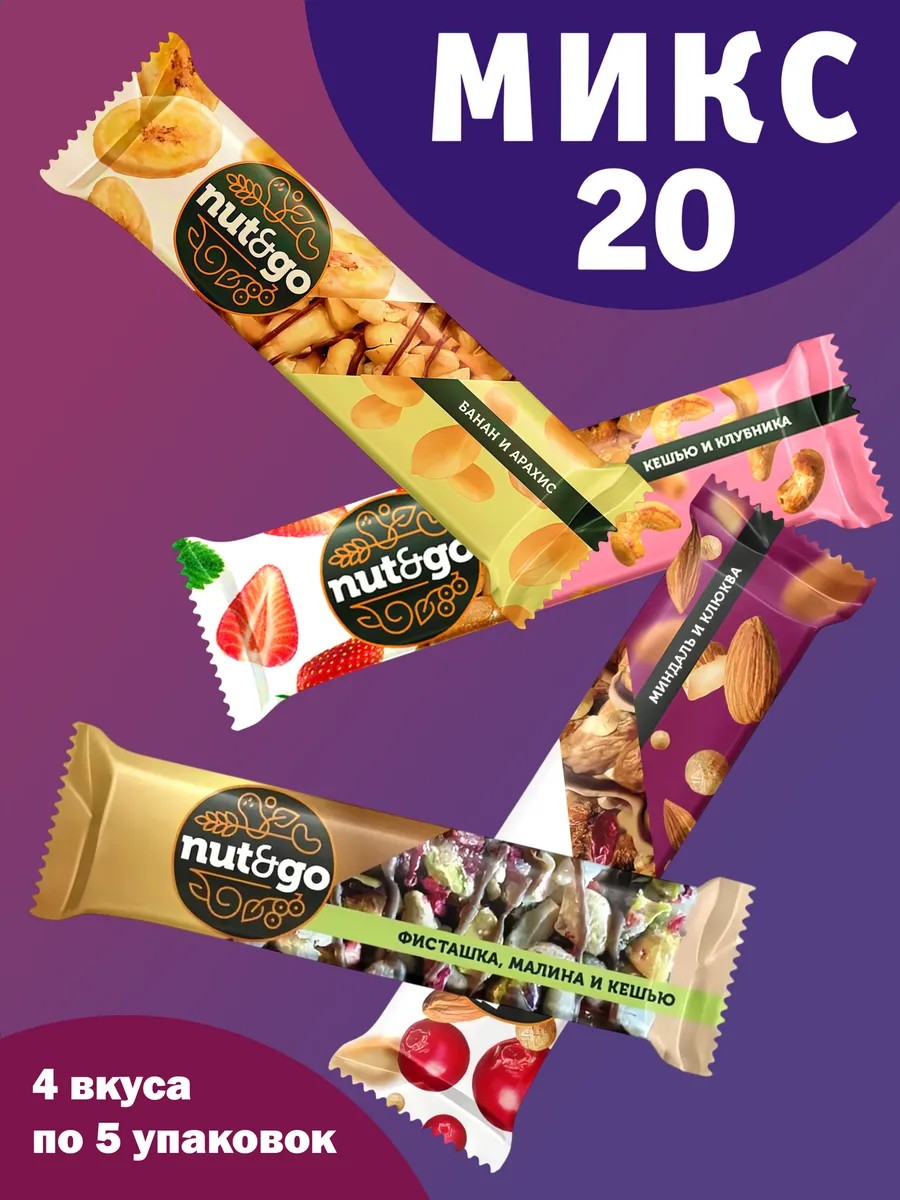 Представляем вам новые вкусы ореховых батончиков Nut&Go от компании KDV в миксе из 20 штук. Этот набор включает: